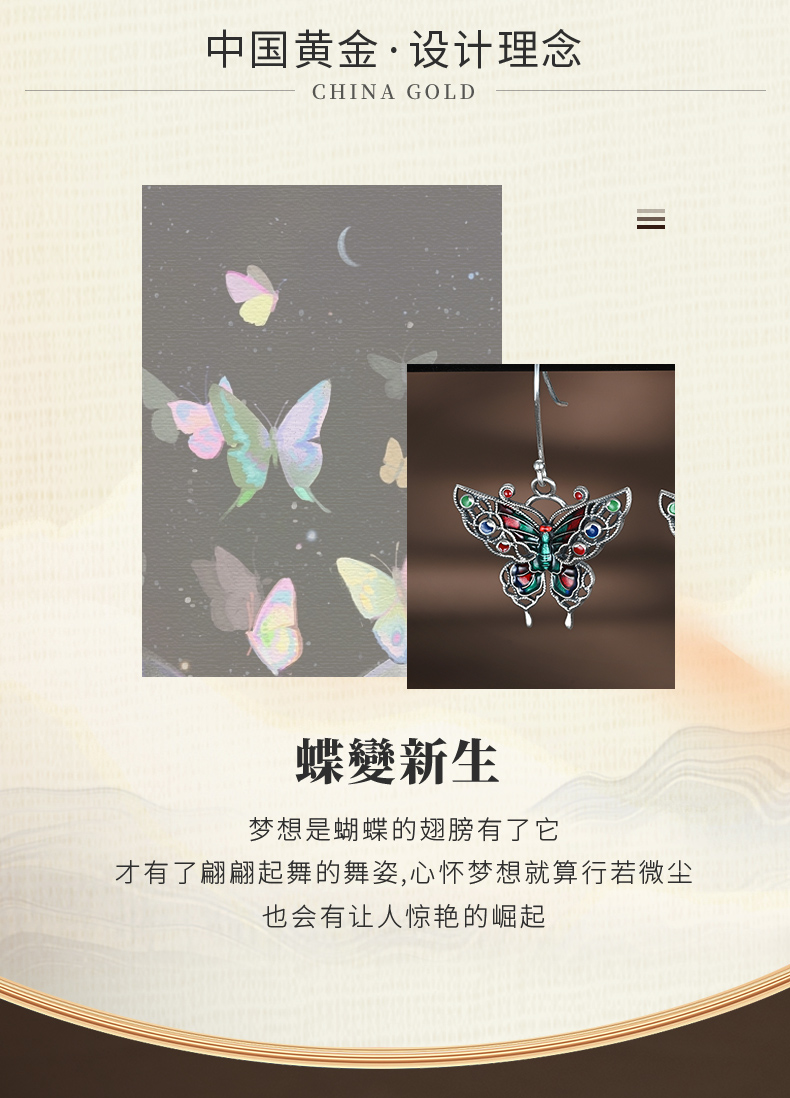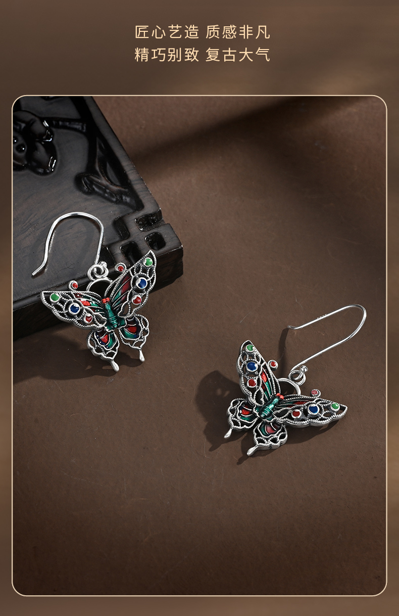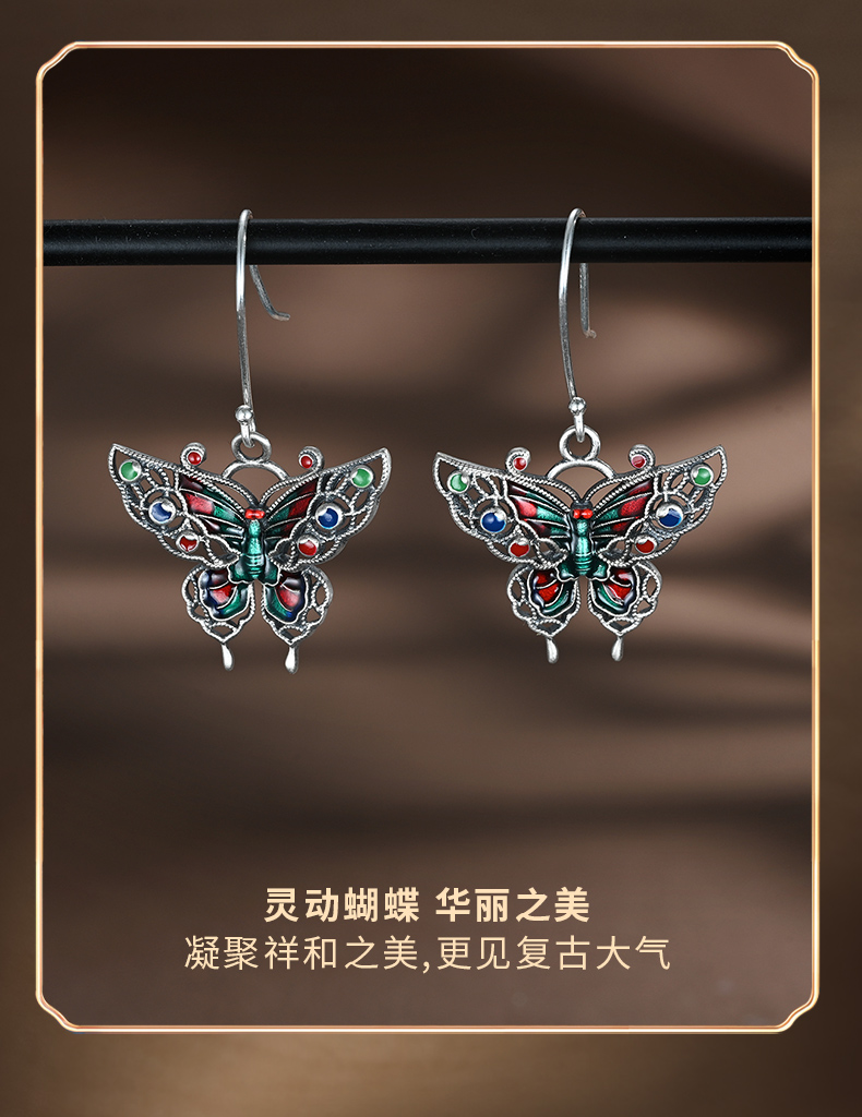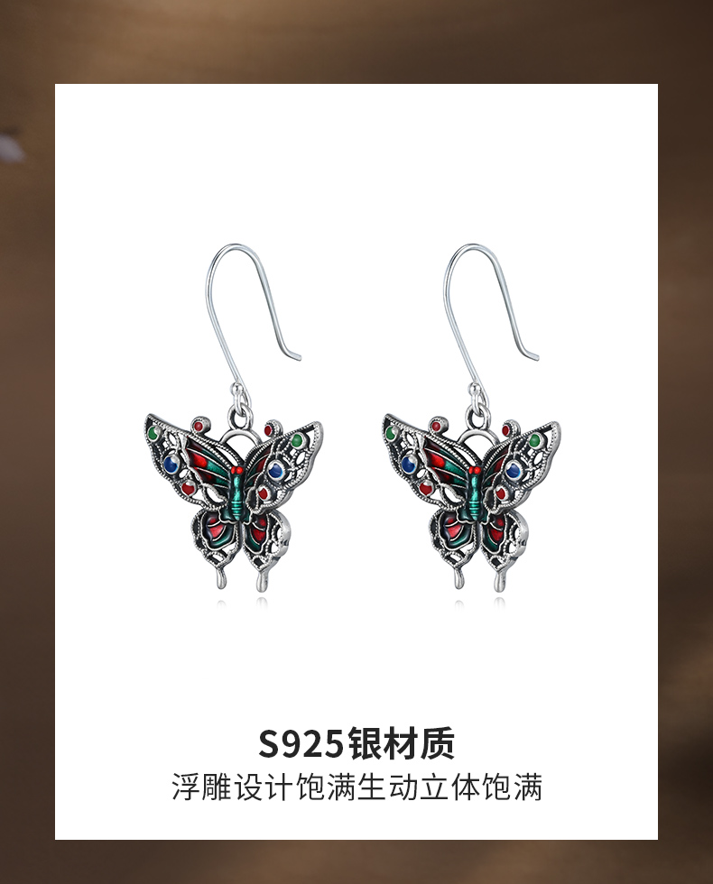 商品名称:China Gold/中国黄金S925银珐琅蝴蝶耳钩ZGHJ231847