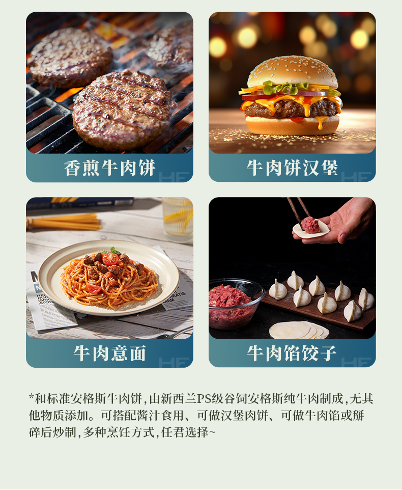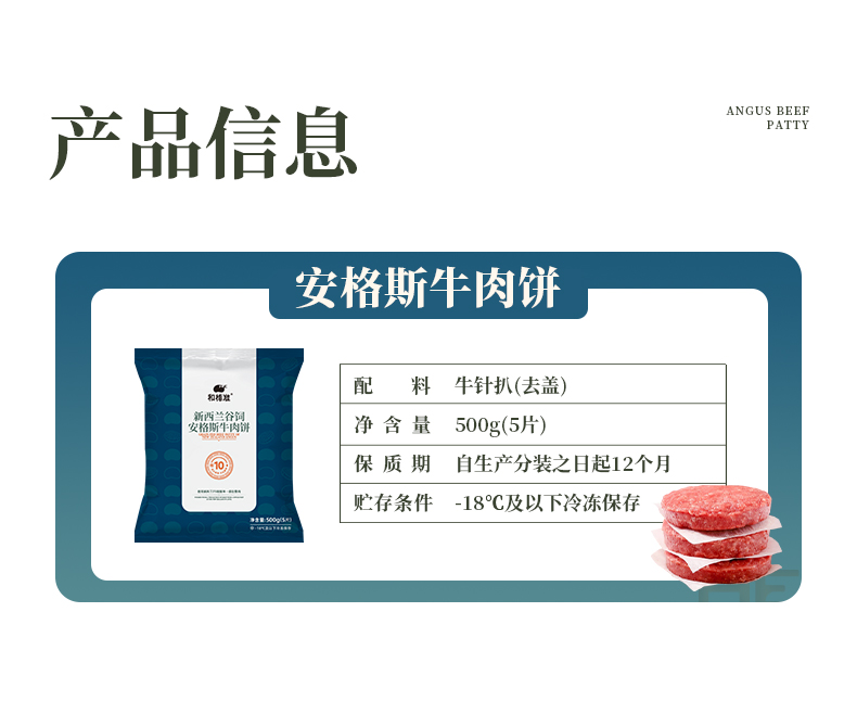 商品名称:【顺丰配送】和标准10标新西兰谷饲安格斯牛肉饼5片装500g