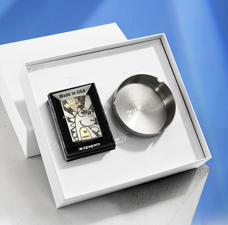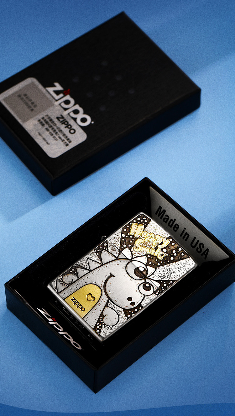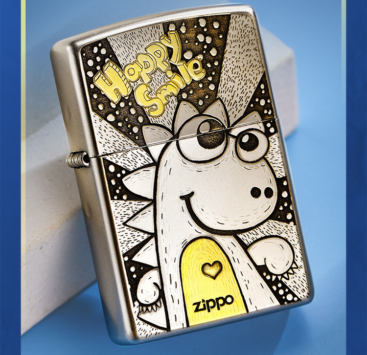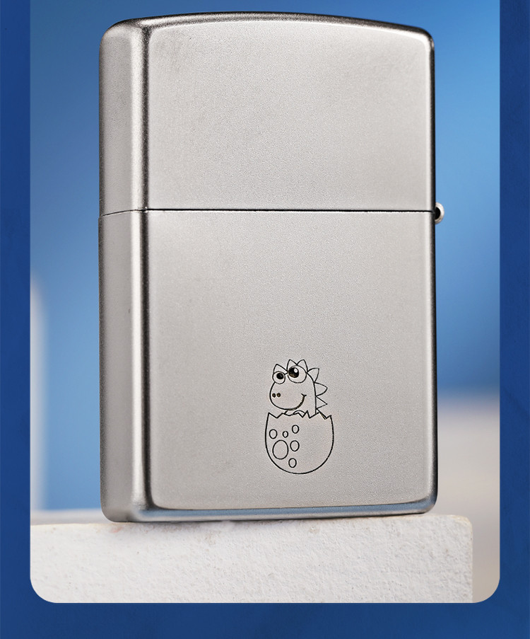 打火机正版镀铬磨砂双面深雕微笑恐龙高级感实用送男士礼物 256414