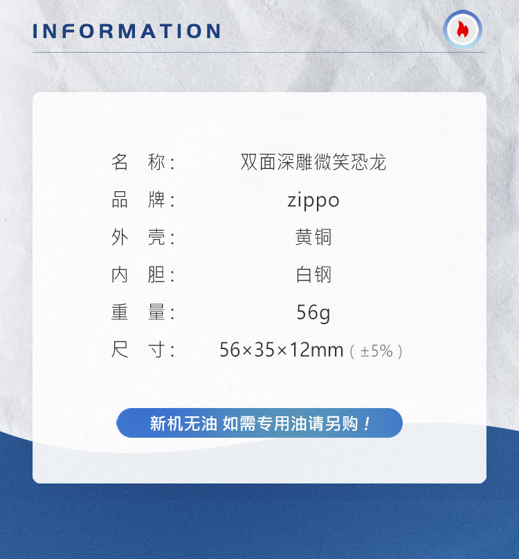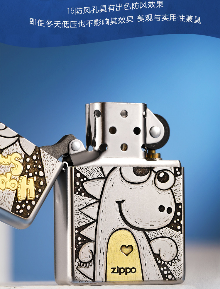 商品名称:打火机正版镀铬磨砂双面深雕微笑恐龙高级感实用送男士礼物 256414