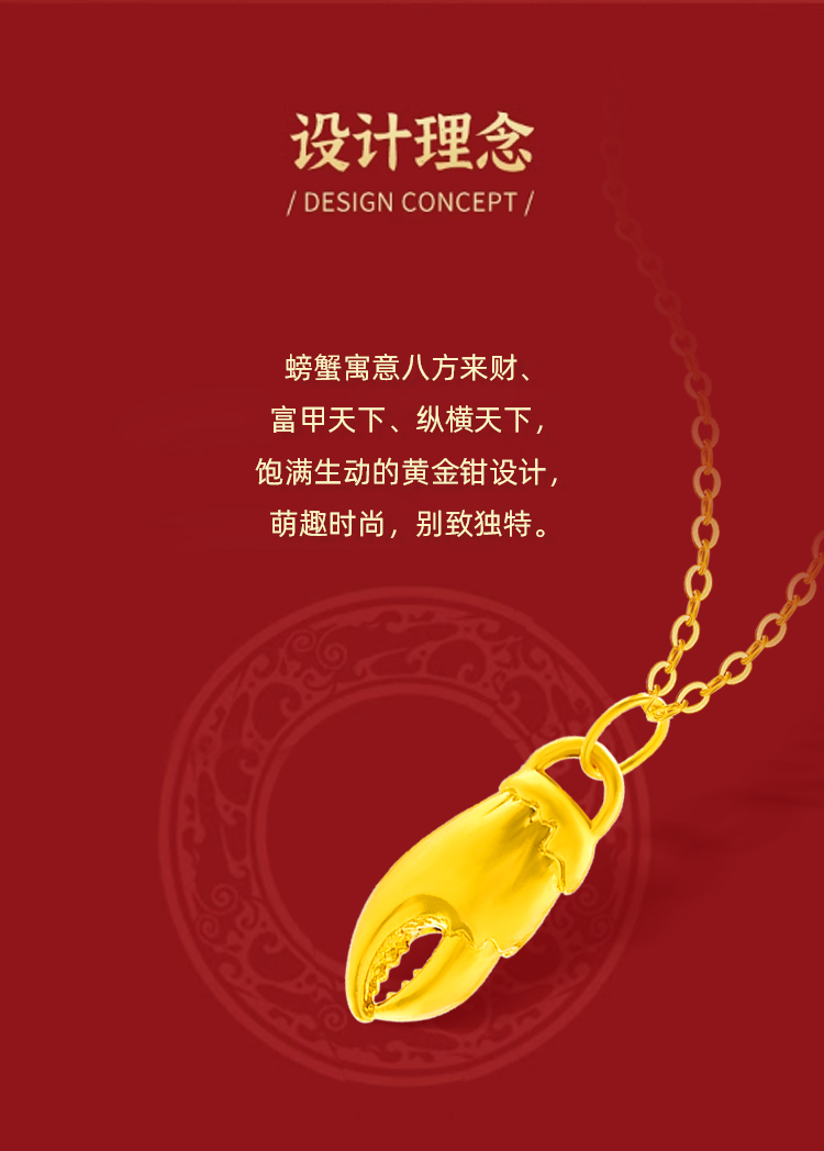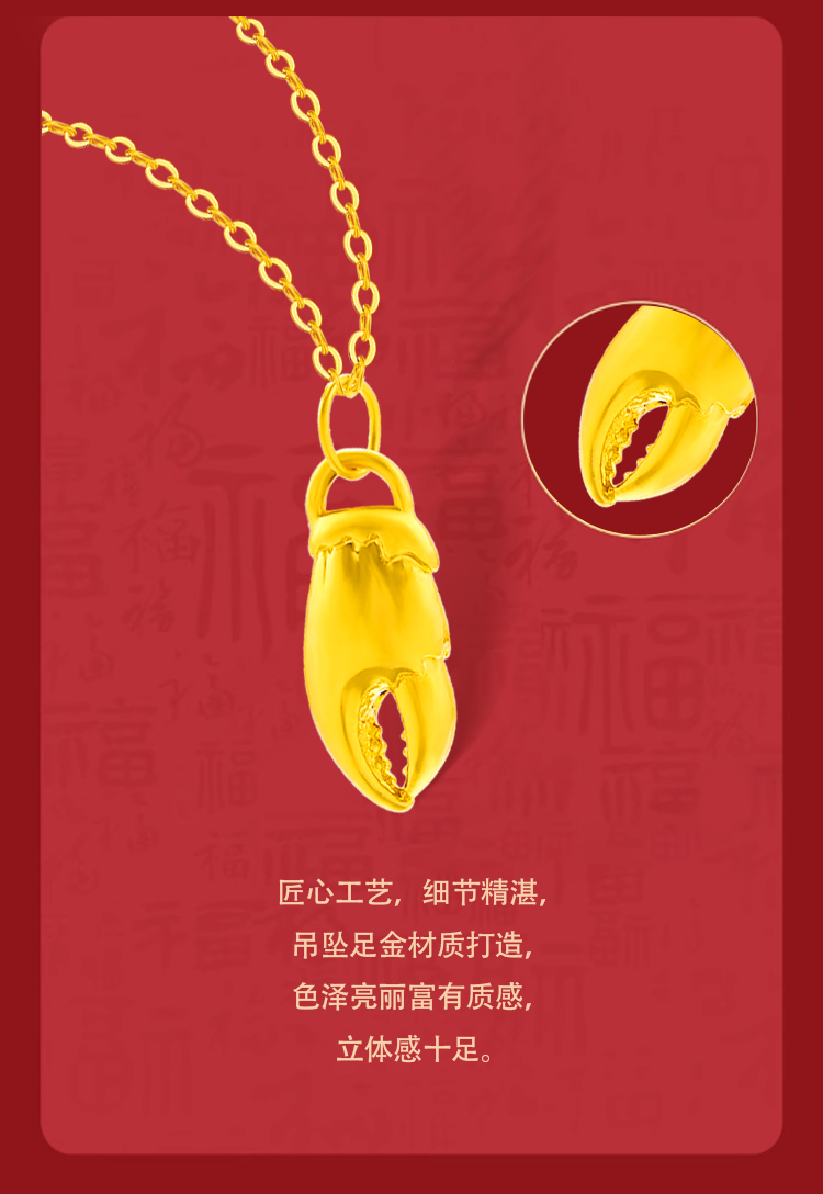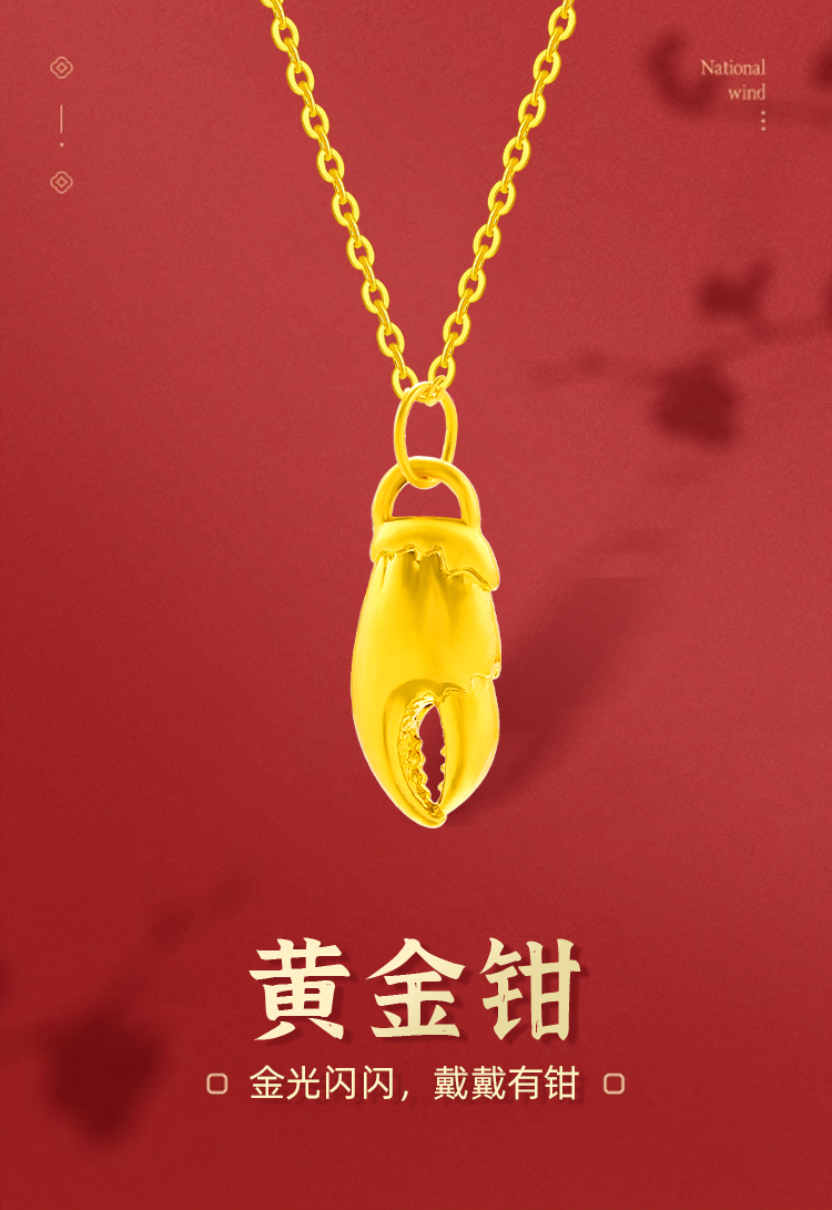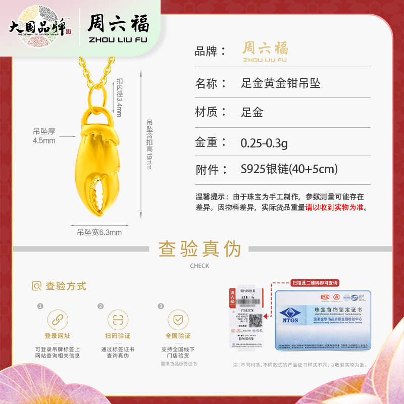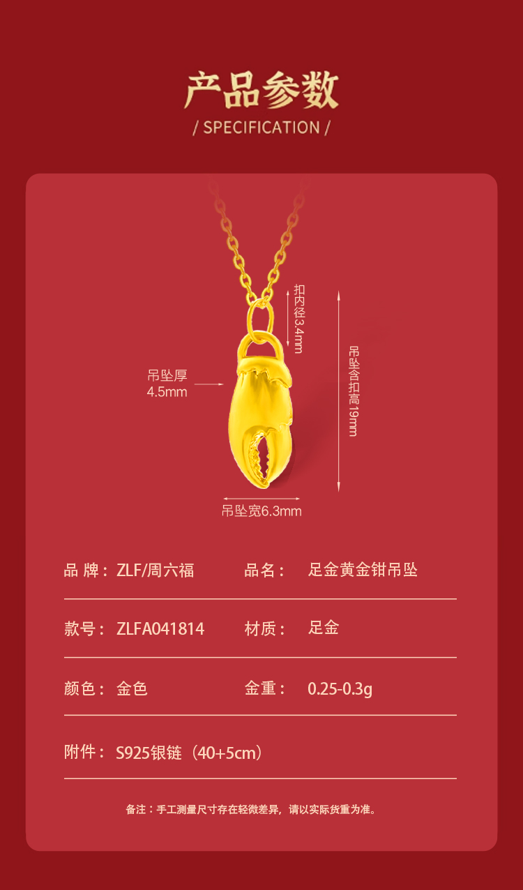 商品名称:周六福足金黄金钳吊坠ZLFA041814