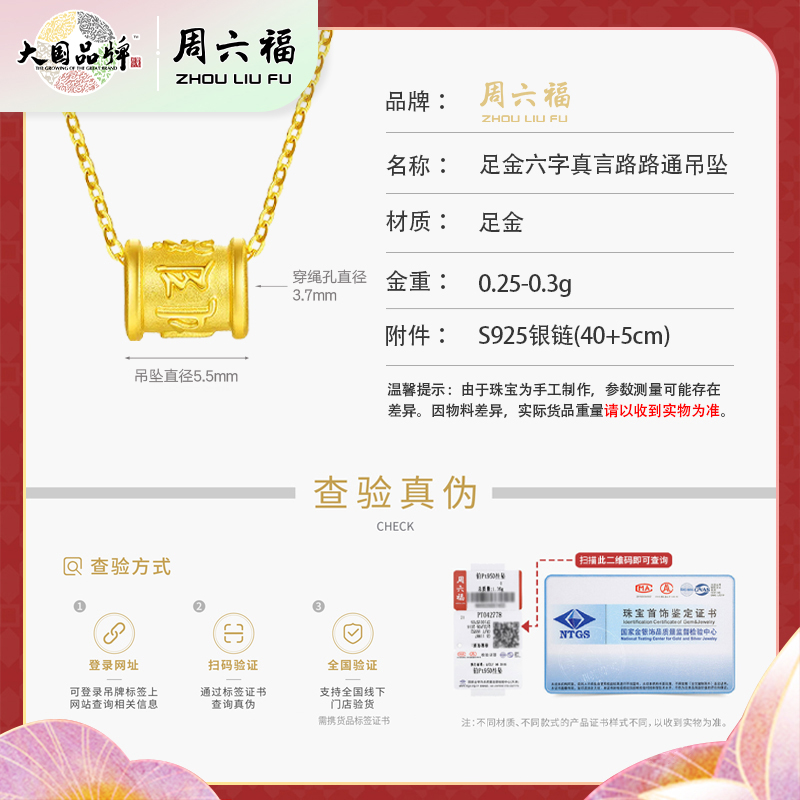 商品名称:周六福足金六字真言路路通吊坠ZLFA04994