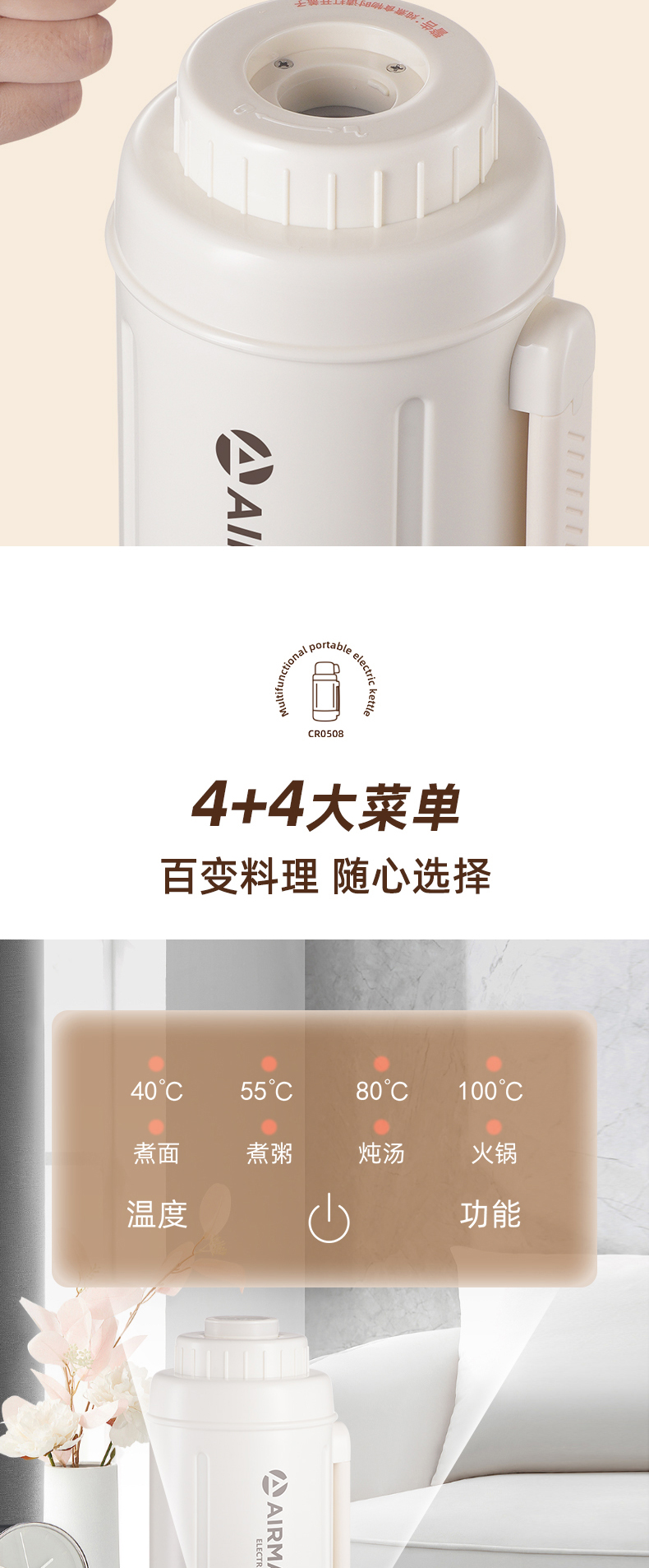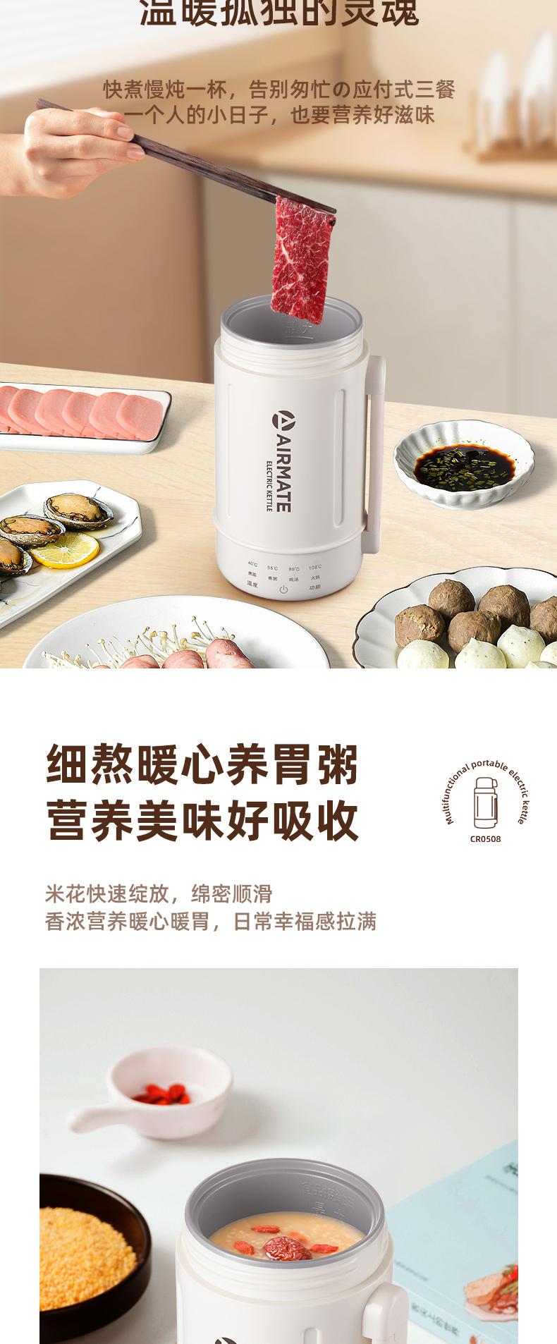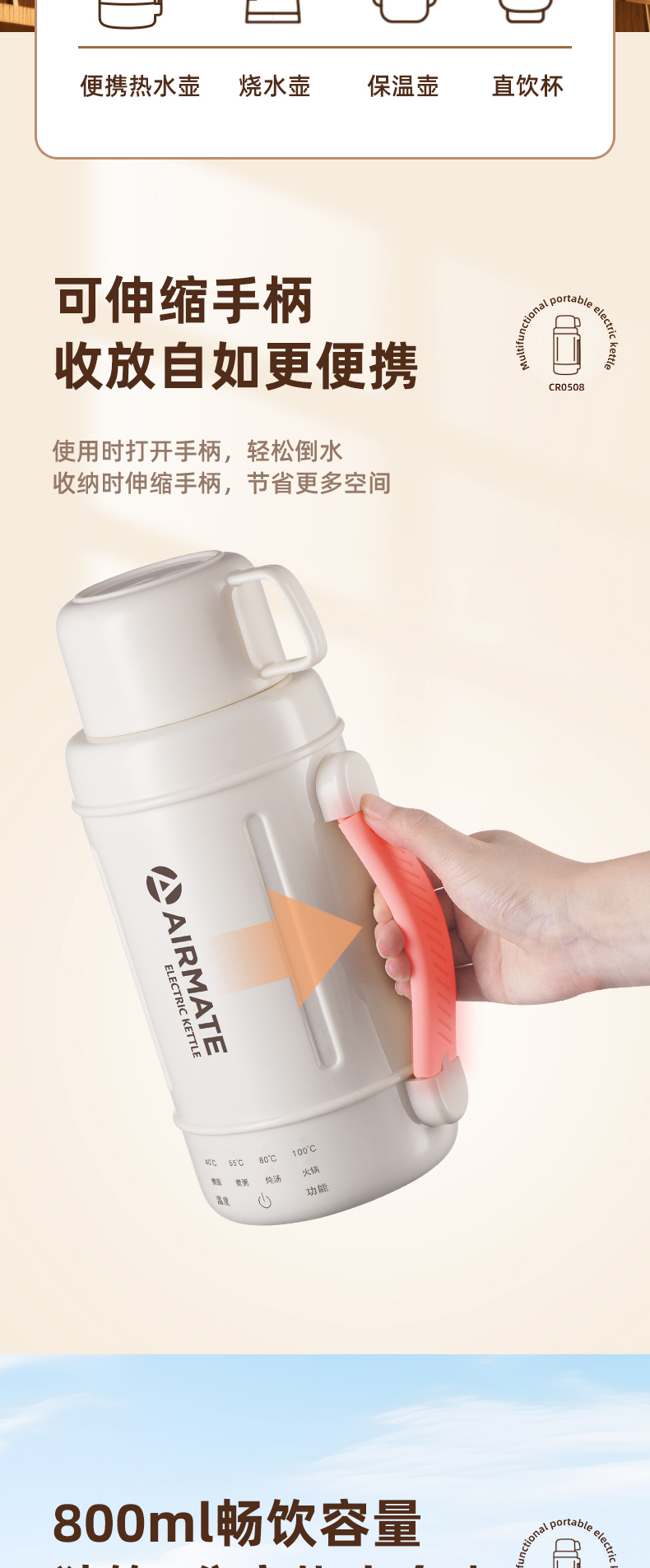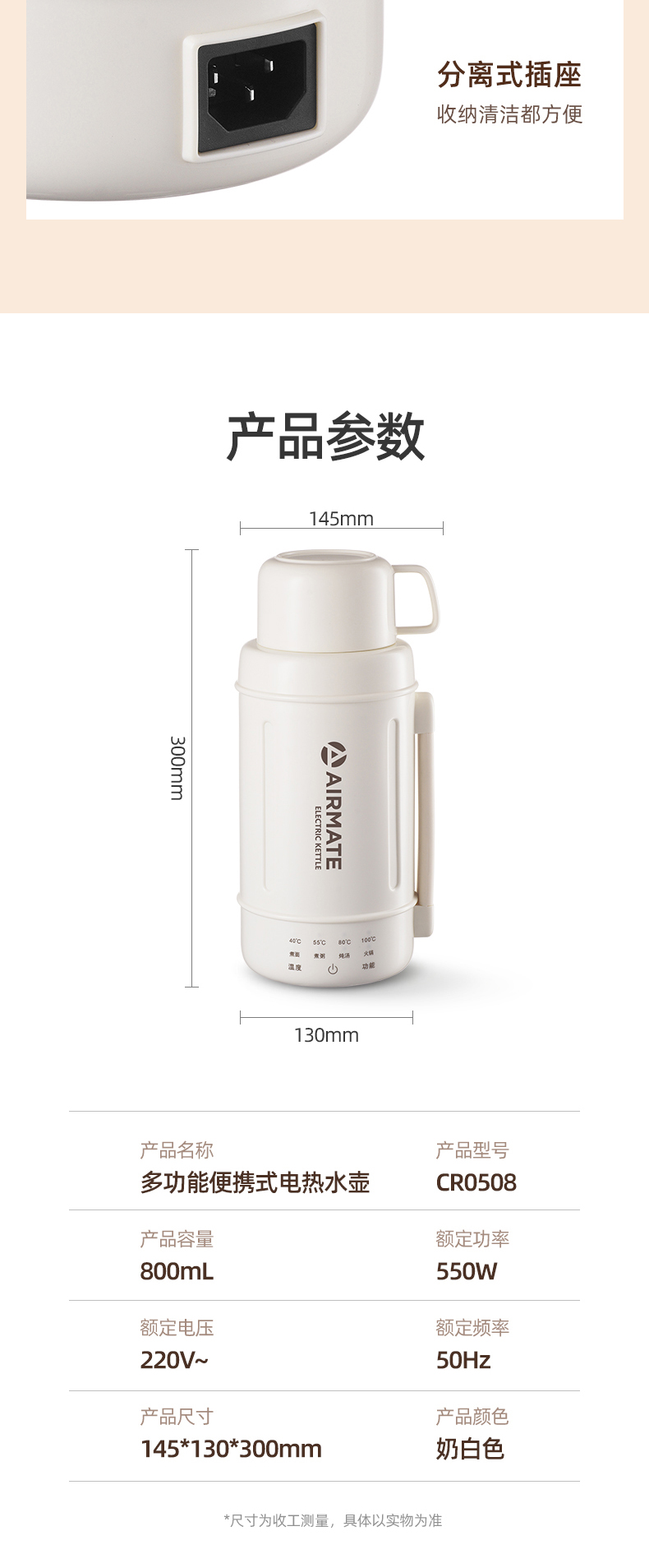 商品名称:Airmate/艾美特800毫升多功能便携式电热水壶CR0508