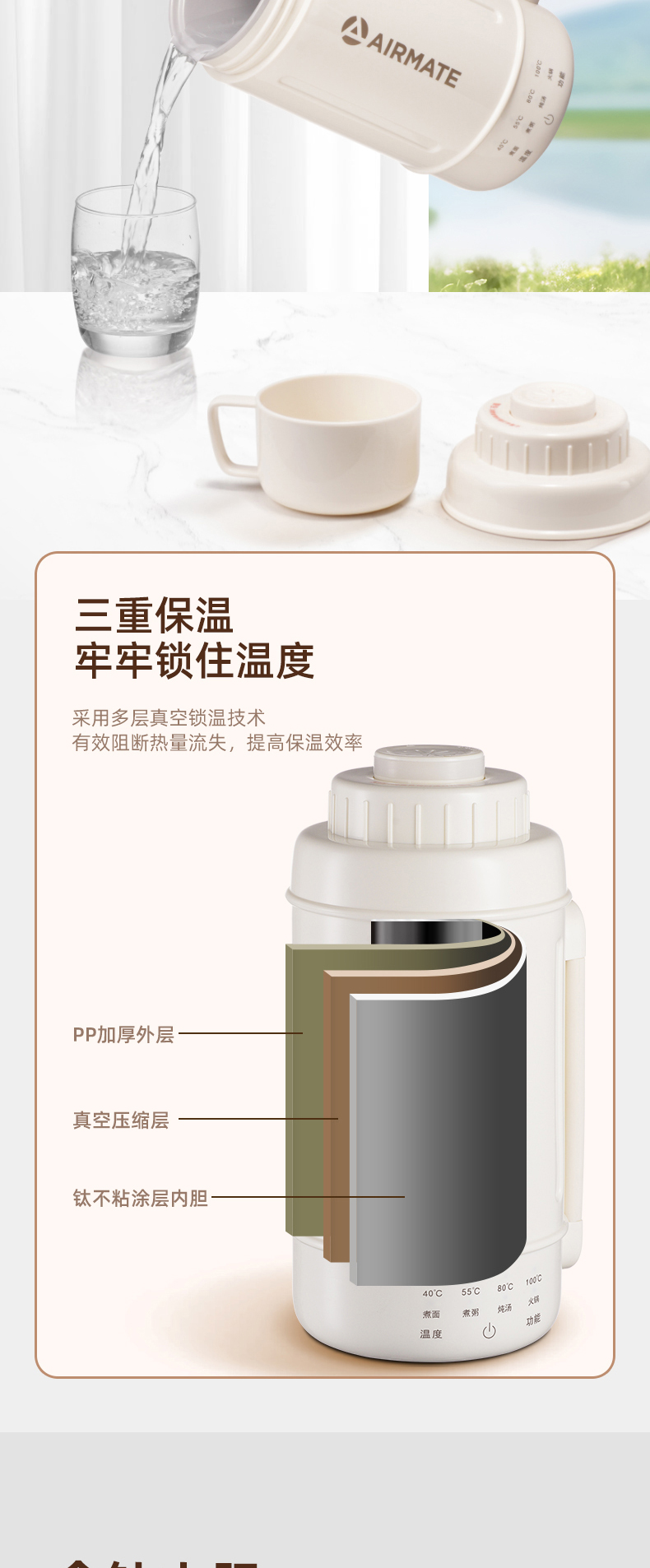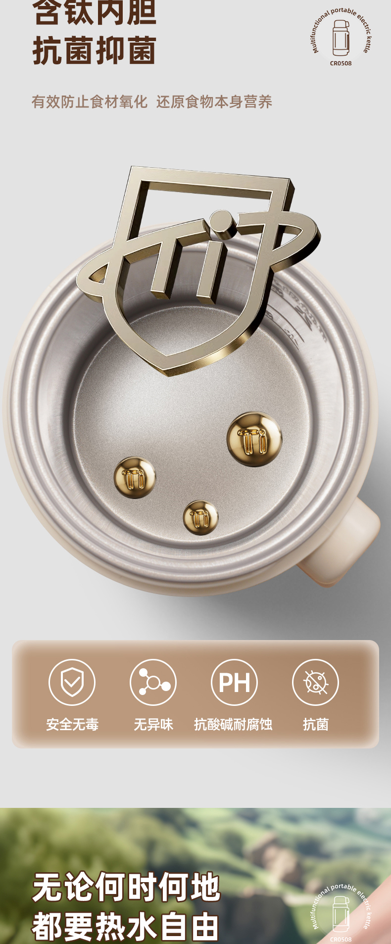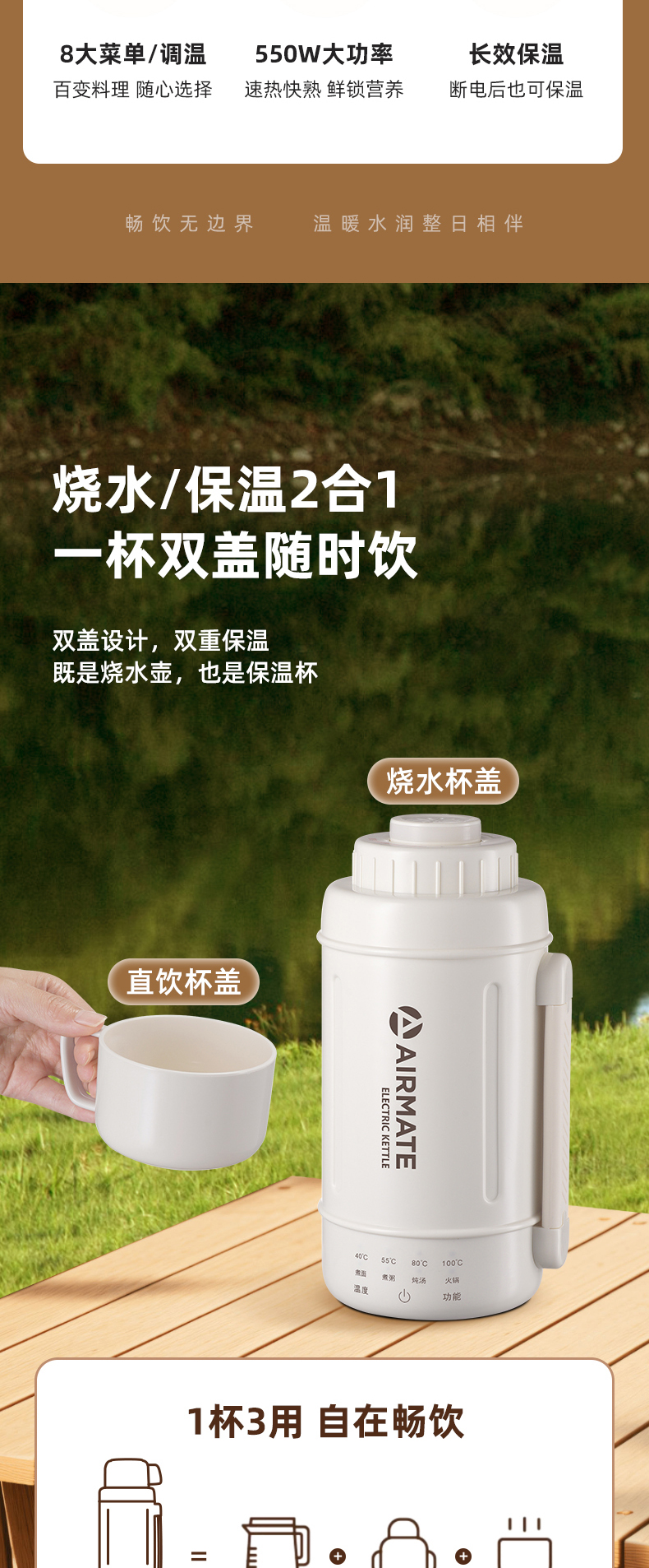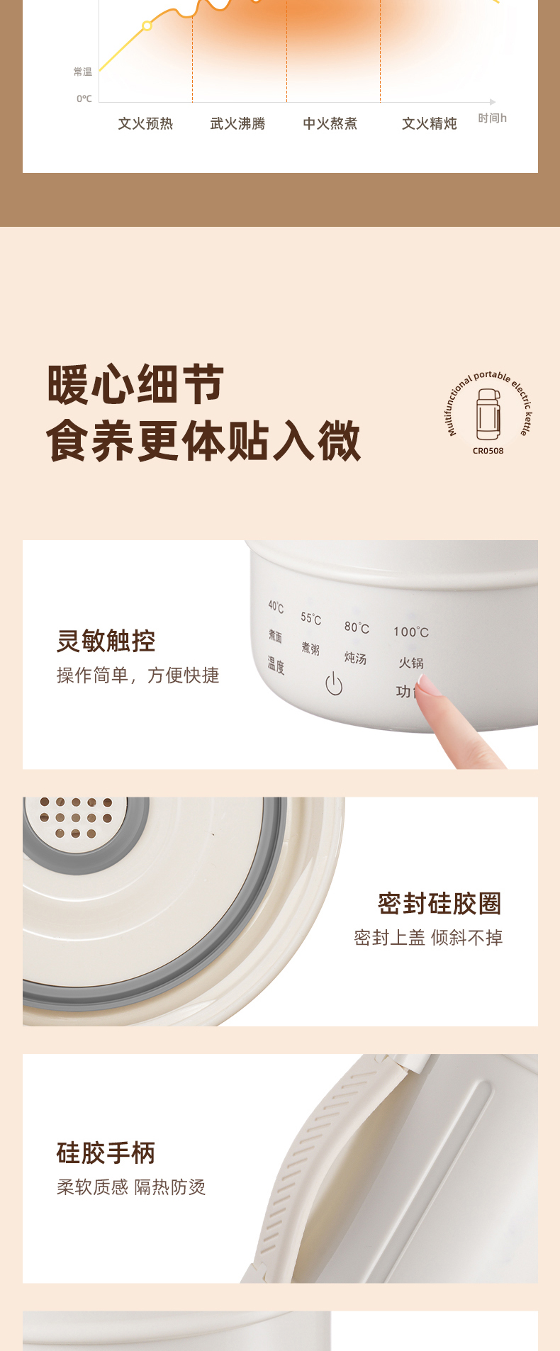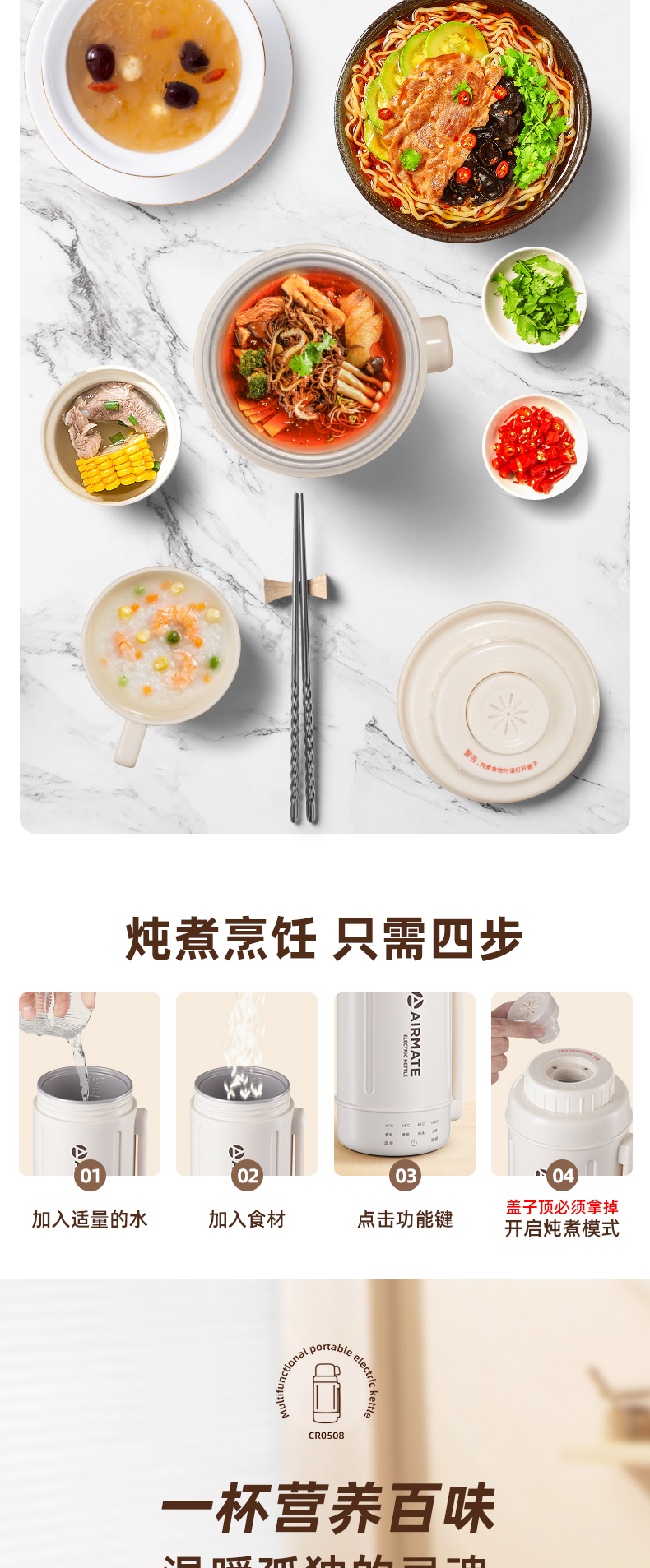 商品名称:Airmate/艾美特800毫升多功能便携式电热水壶CR0508