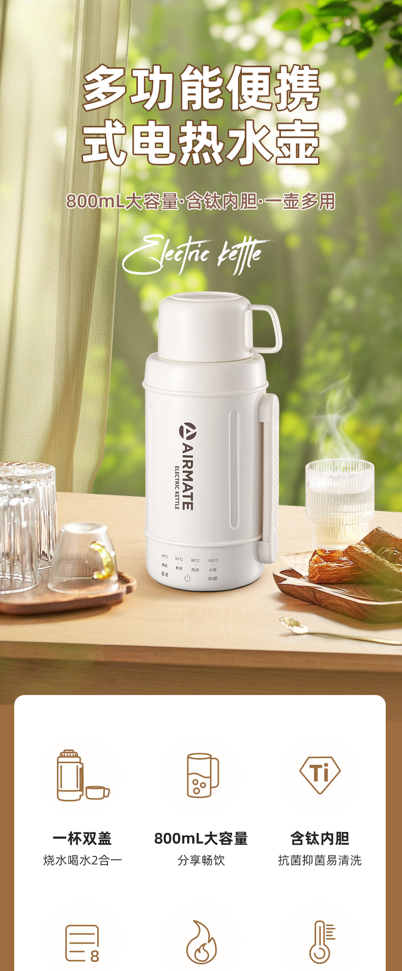 Airmate/艾美特800毫升多功能便携式电热水壶CR0508