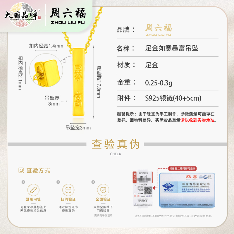 商品名称:周六福足金如意暴富吊坠ZLFA041810