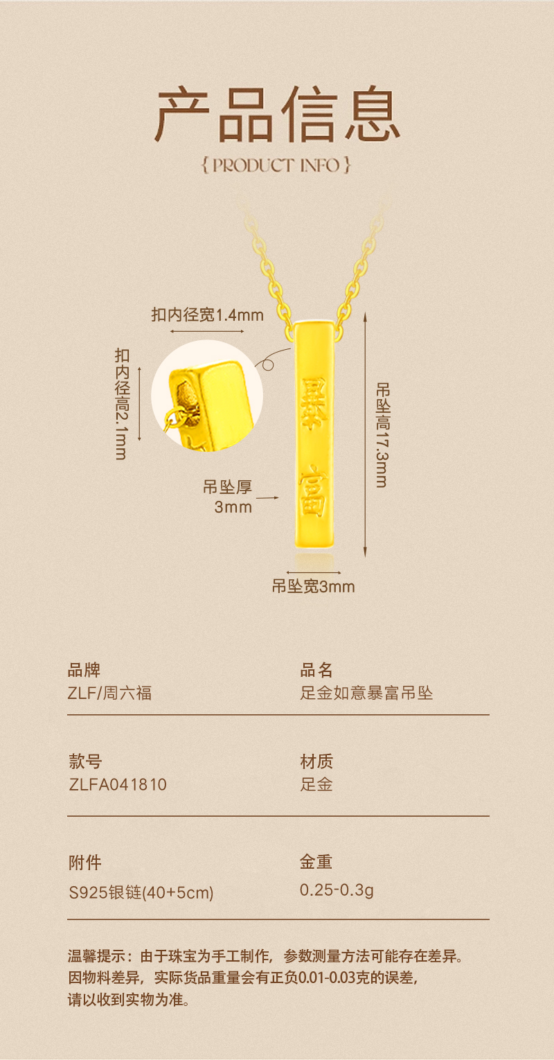 周六福足金如意暴富吊坠ZLFA041810