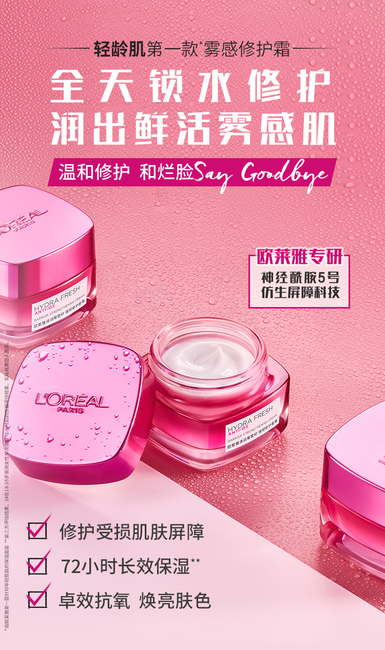 商品名称:L'oreal/欧莱雅 水绷带面霜 50ml 神经酰胺清爽不黏腻补水保湿面霜