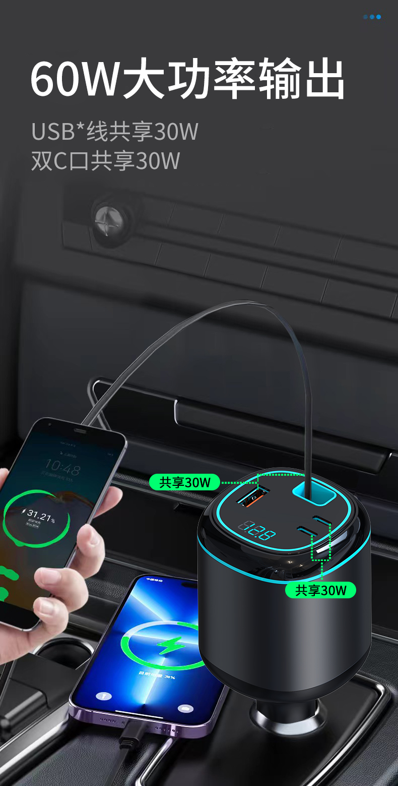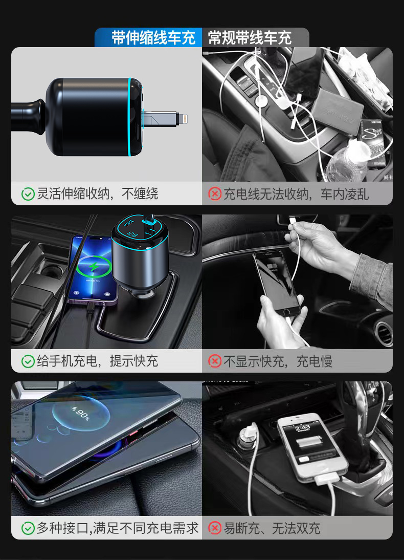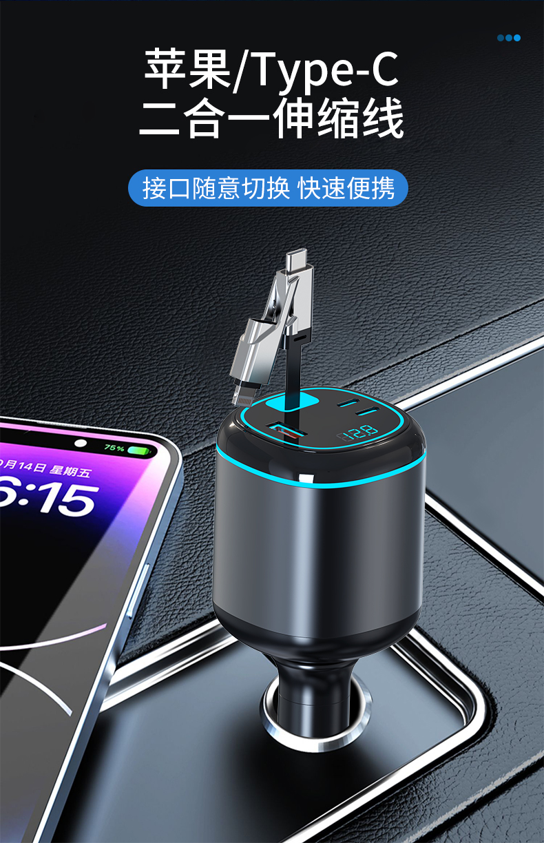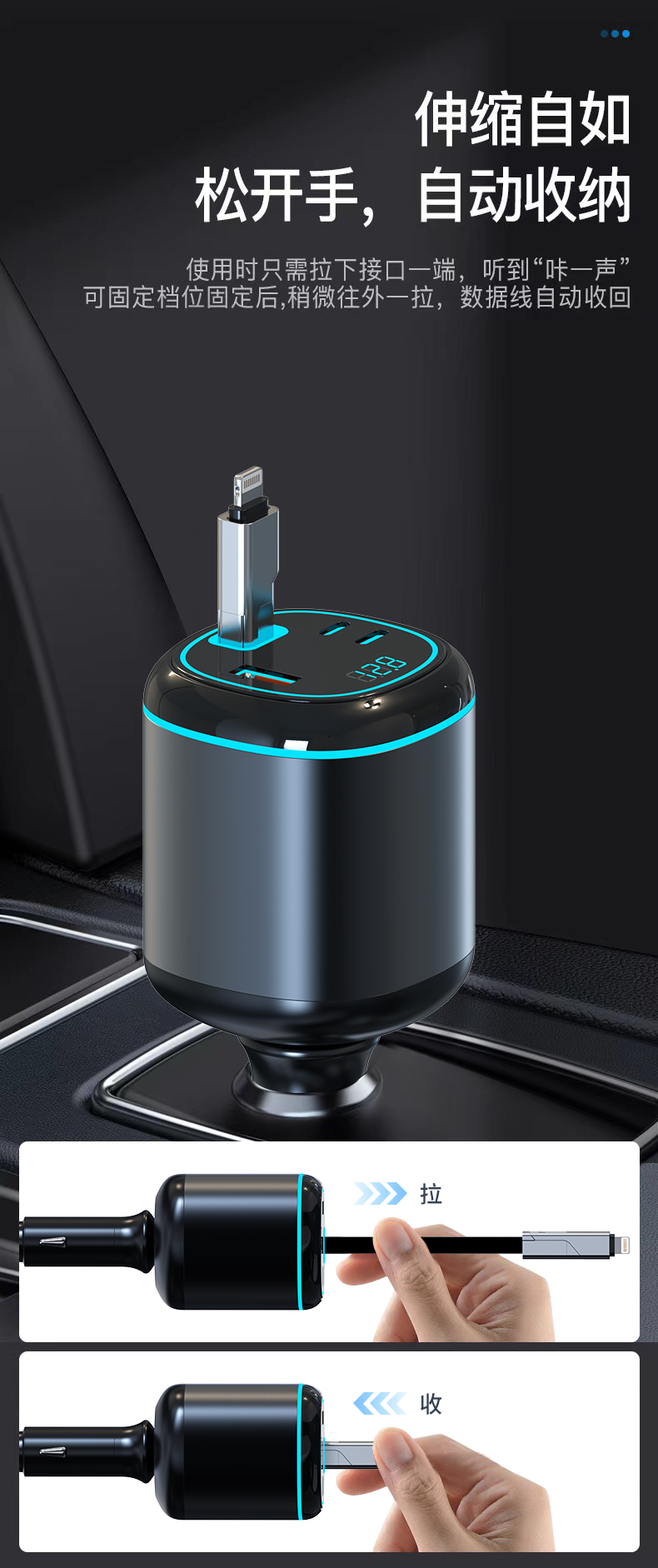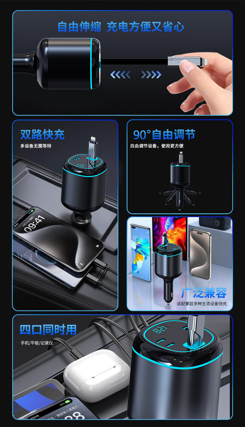 Auto Travel/美旅一拖四伸缩线车载充电器AT-5032