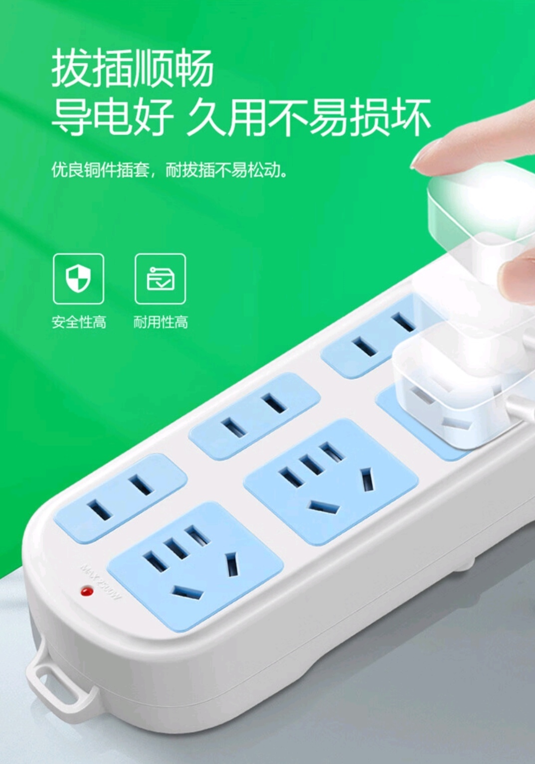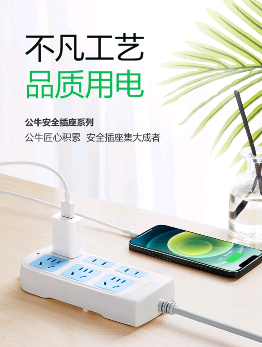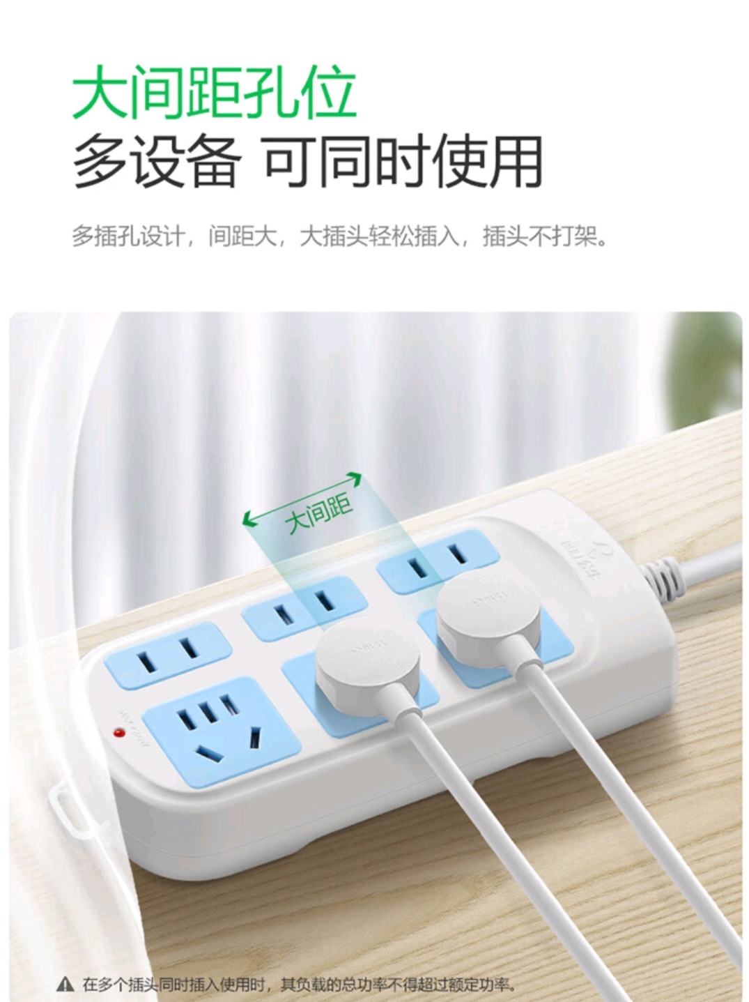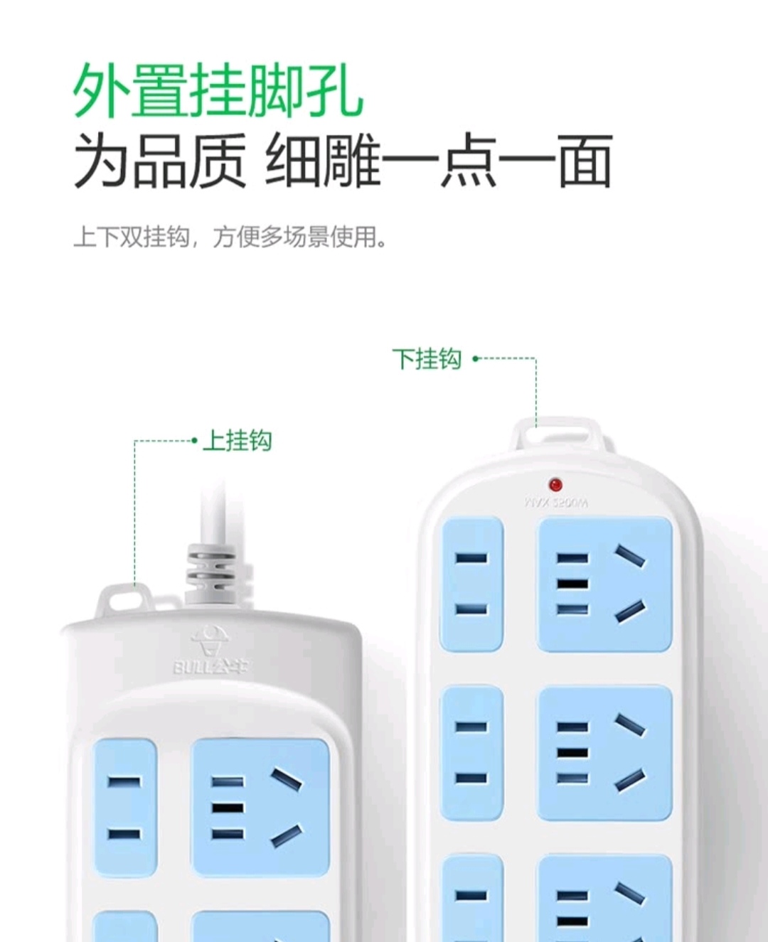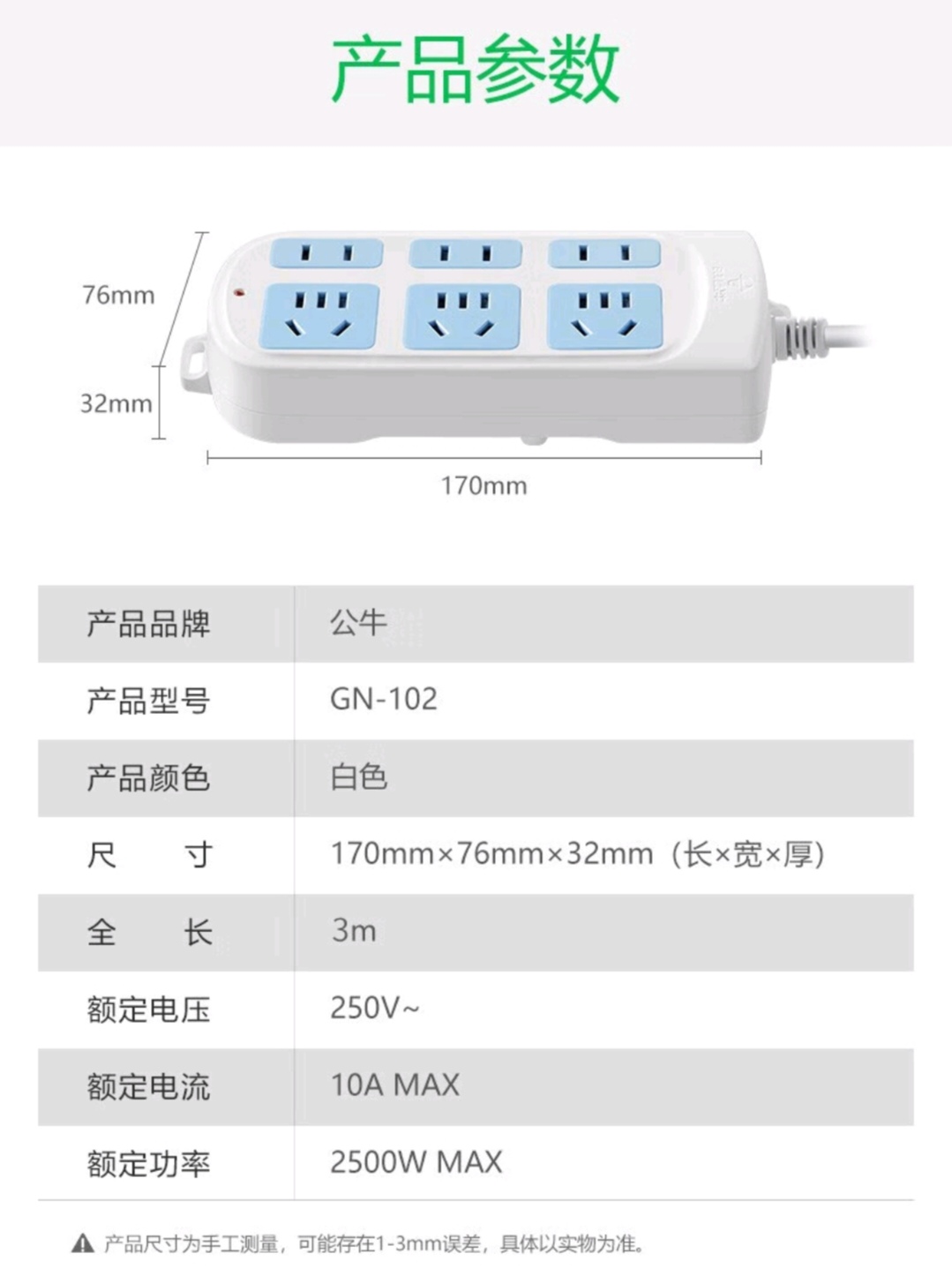 商品名称:BULL/公牛3米六位插座-白色GN102