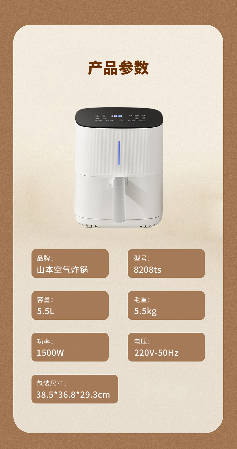 商品名称:SHANBEN/山本5.5升空气炸锅8208TS