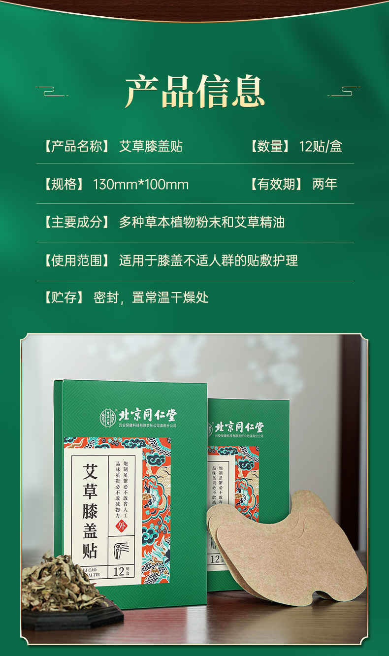 商品名称:北京同仁堂艾草膝盖贴12贴*1盒