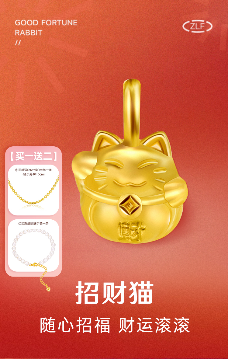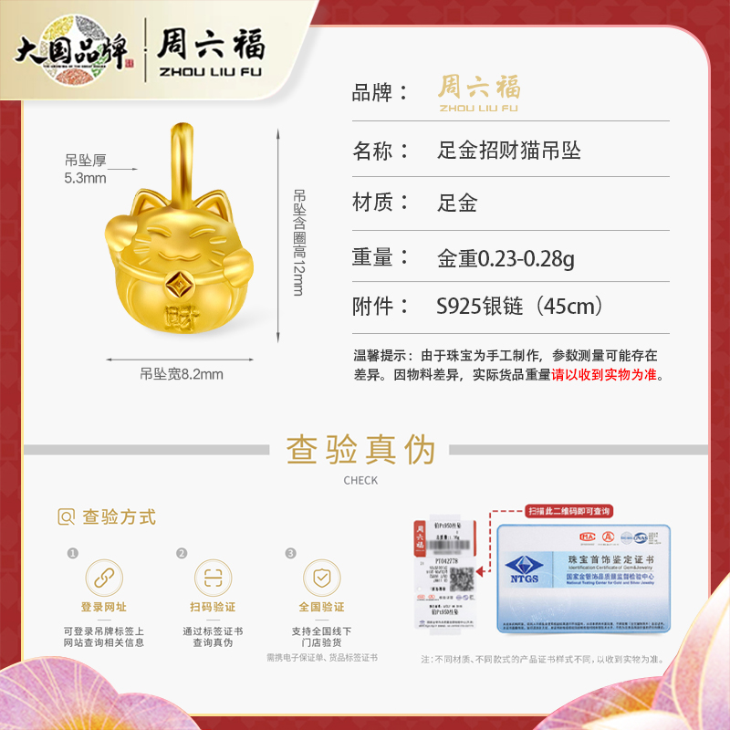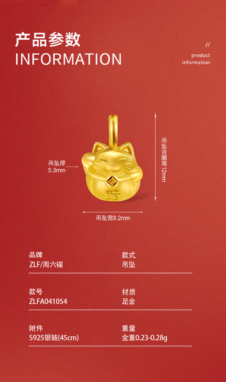 商品名称:周六福足金招财猫吊坠ZLFA041054
