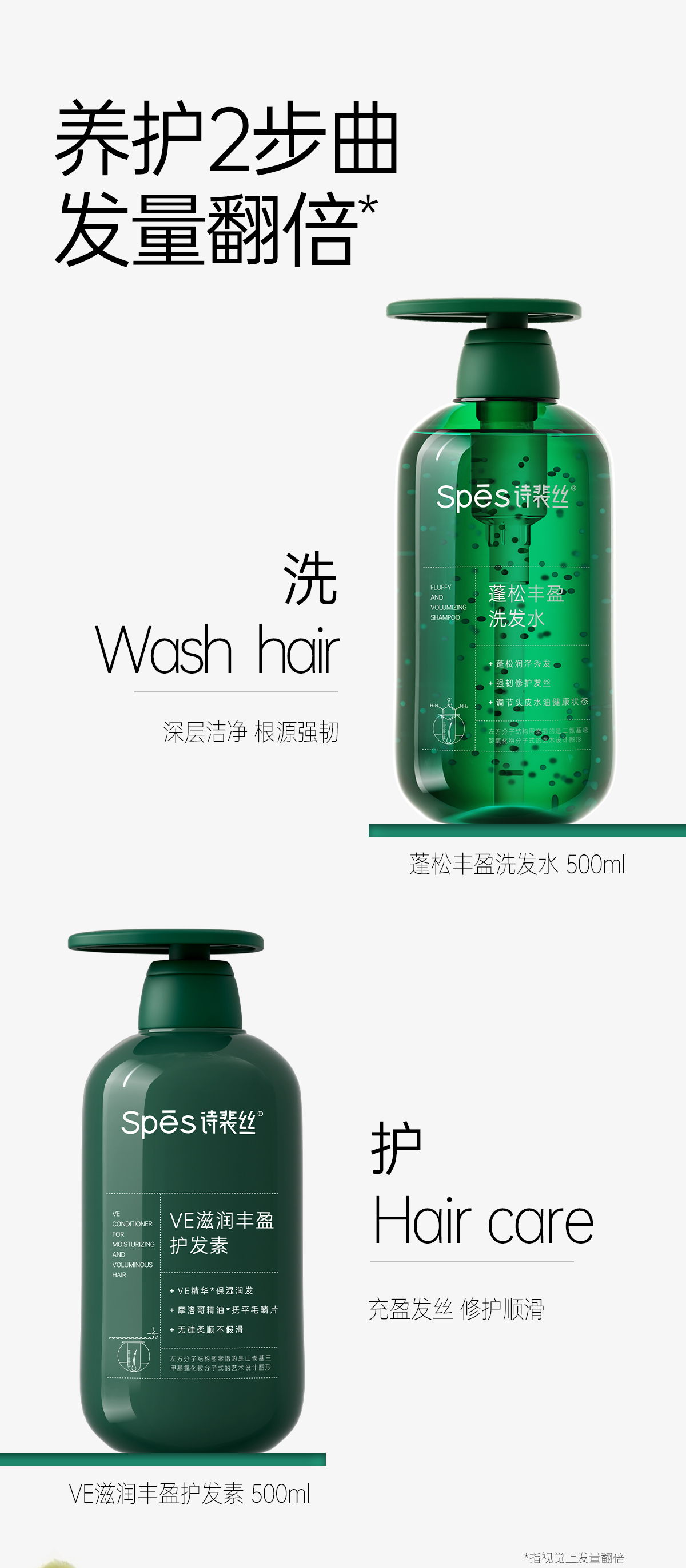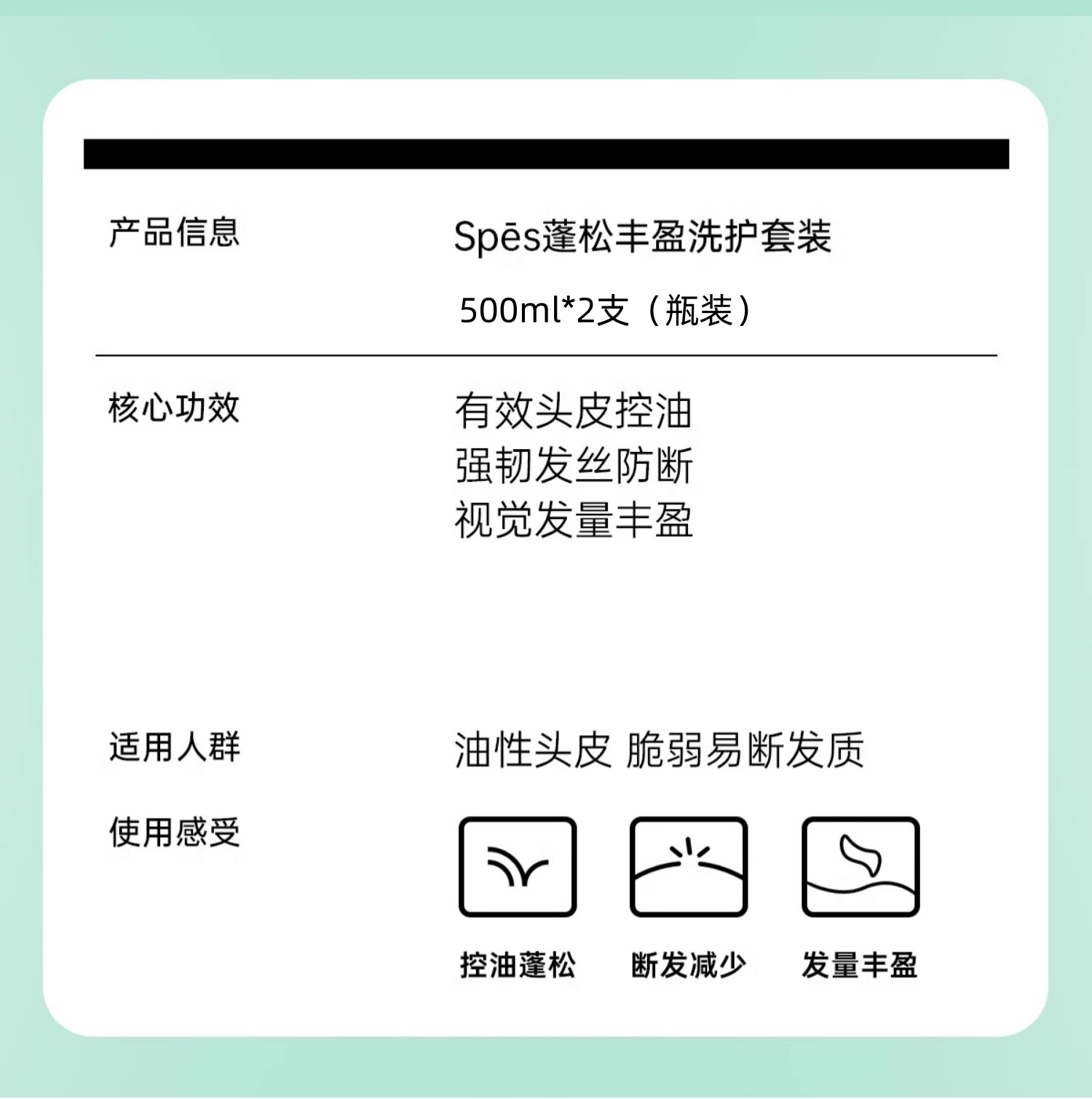 商品名称:Spēs/诗裴丝蓬松丰盈洗发水500ml+滋润丰盈护发素500ml