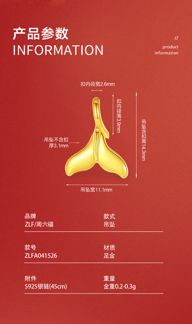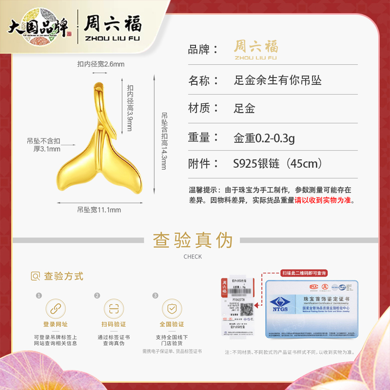 商品名称:周六福足金余生有你吊坠ZLFA041526