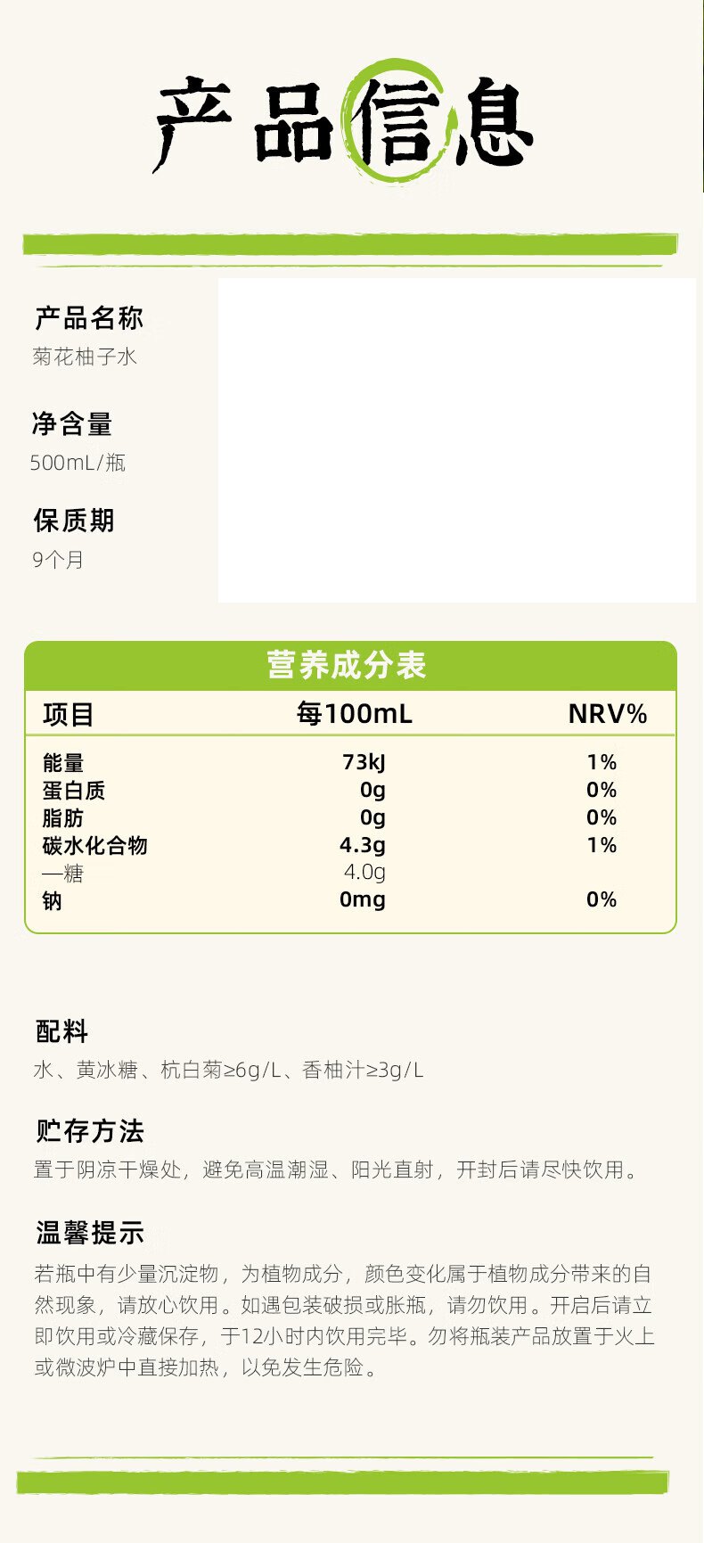 商品名称:可可满分菊花柚子水