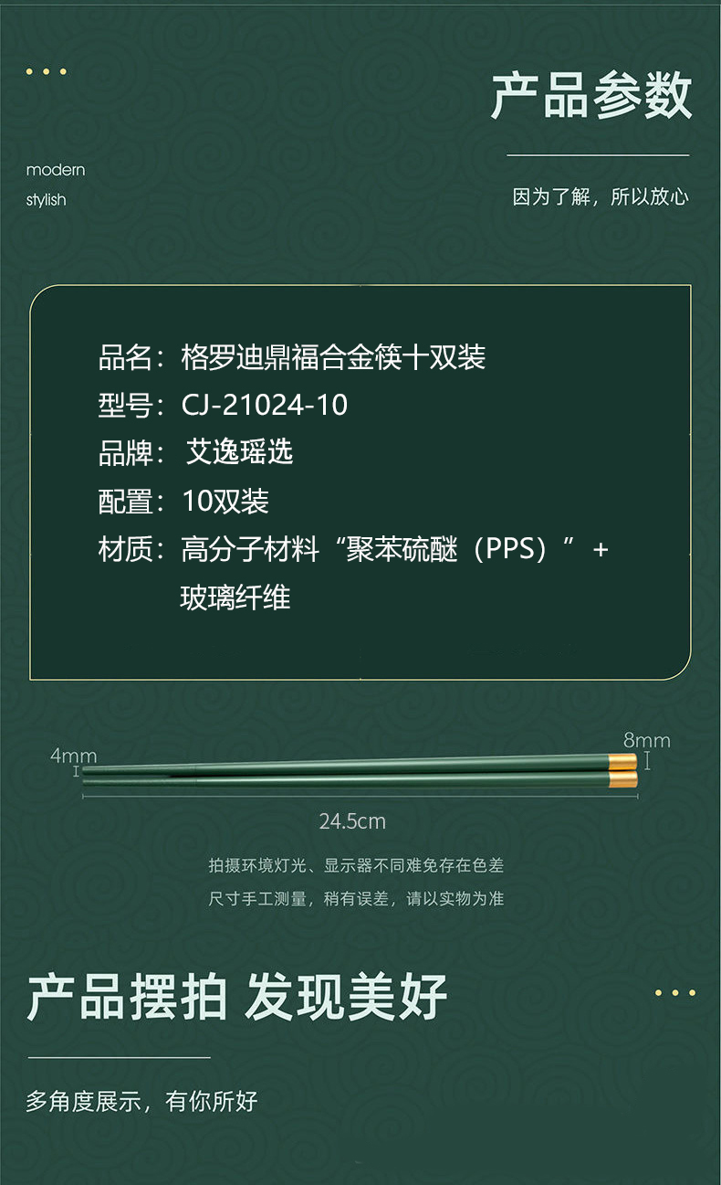 商品名称:艾逸瑶选格罗迪鼎福合金筷十双装CJ-21024-10