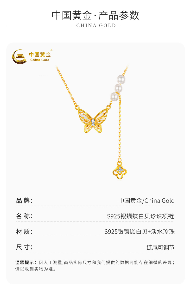商品名称:China Gold/中国黄金S925银蝴蝶白贝珍珠项链ZGHJ230421