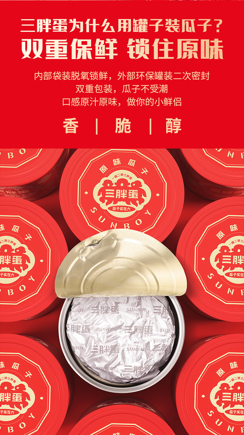 商品名称:三胖蛋经典瓜子罐装218g
