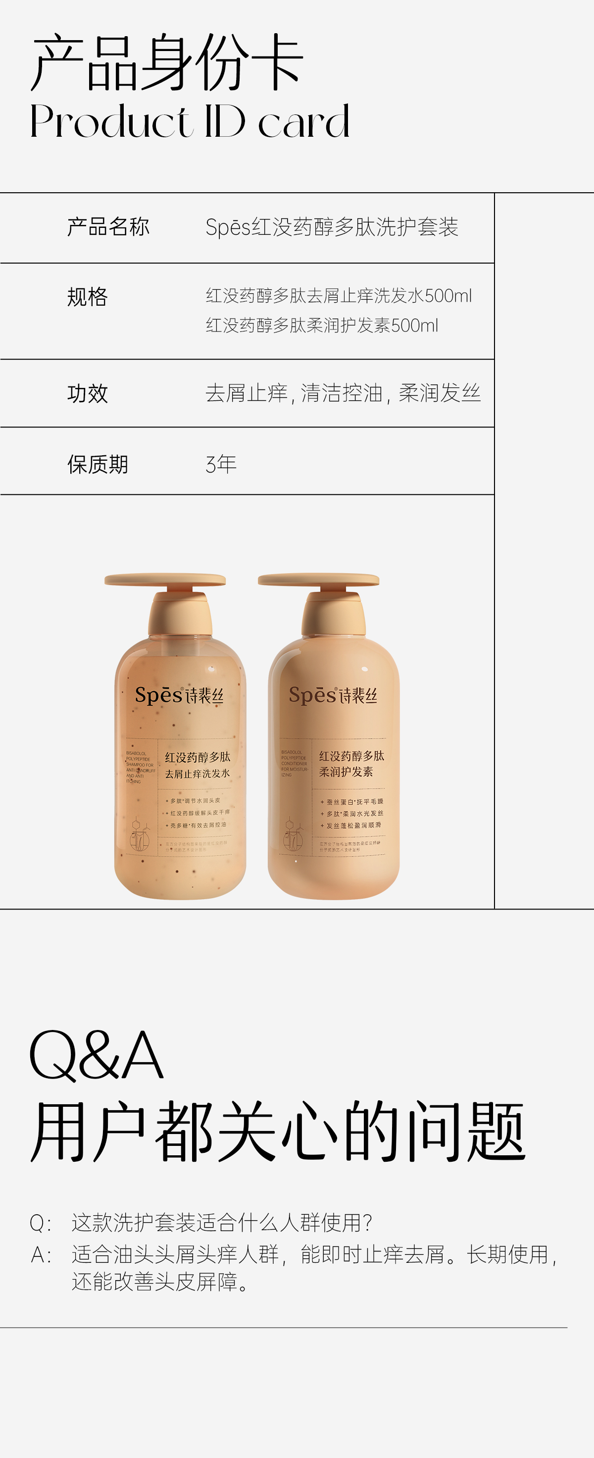 商品名称:Spēs/诗裴丝红没药醇多肽去屑止痒洗发水500ml+护发素500ml