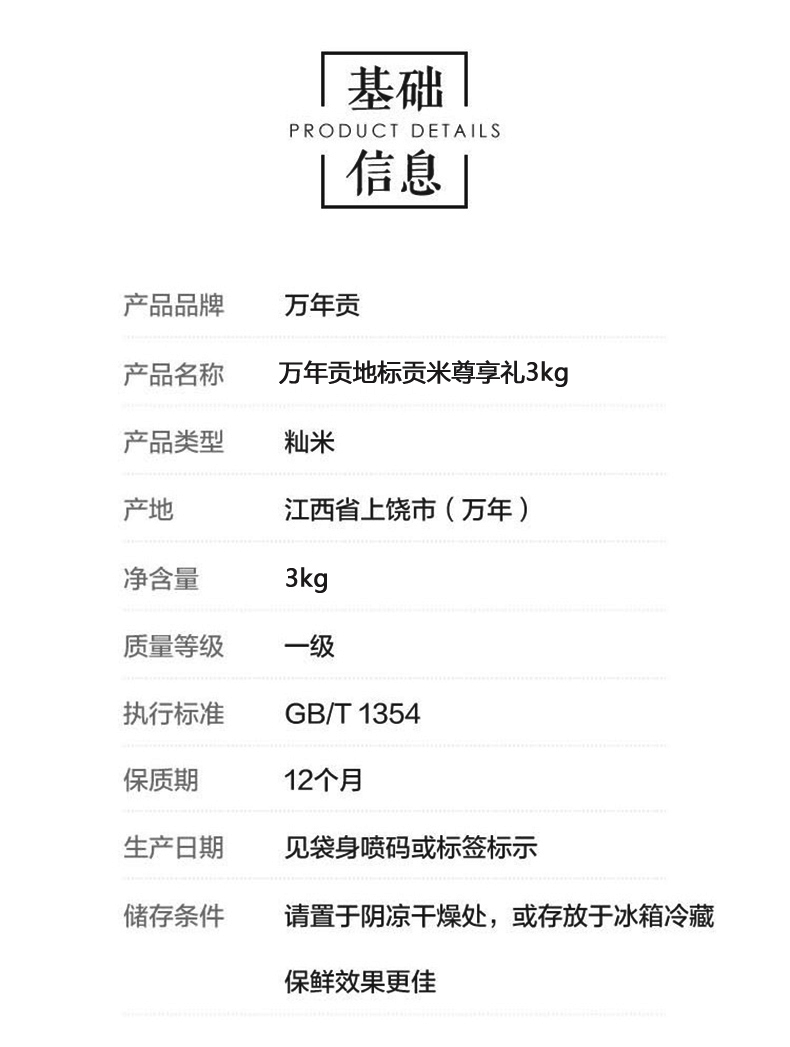 商品名称:万年贡地标贡米尊享礼盒3kg