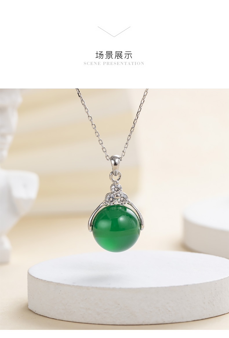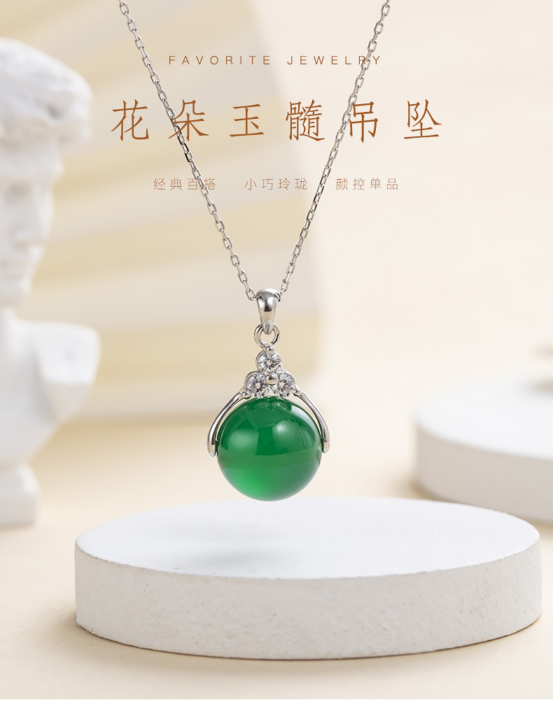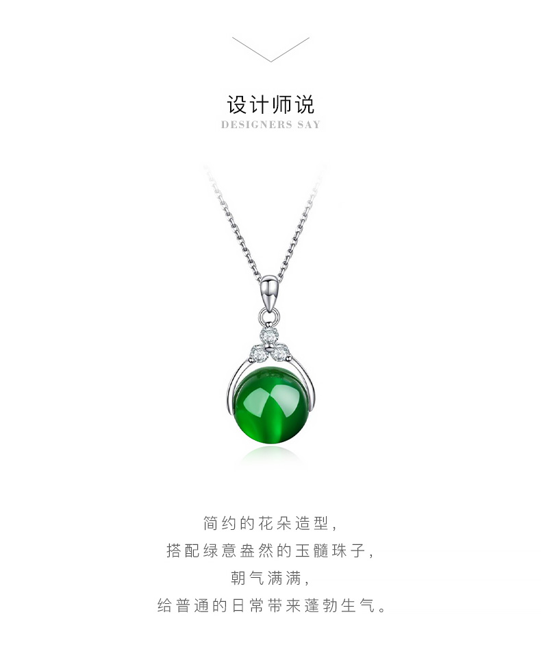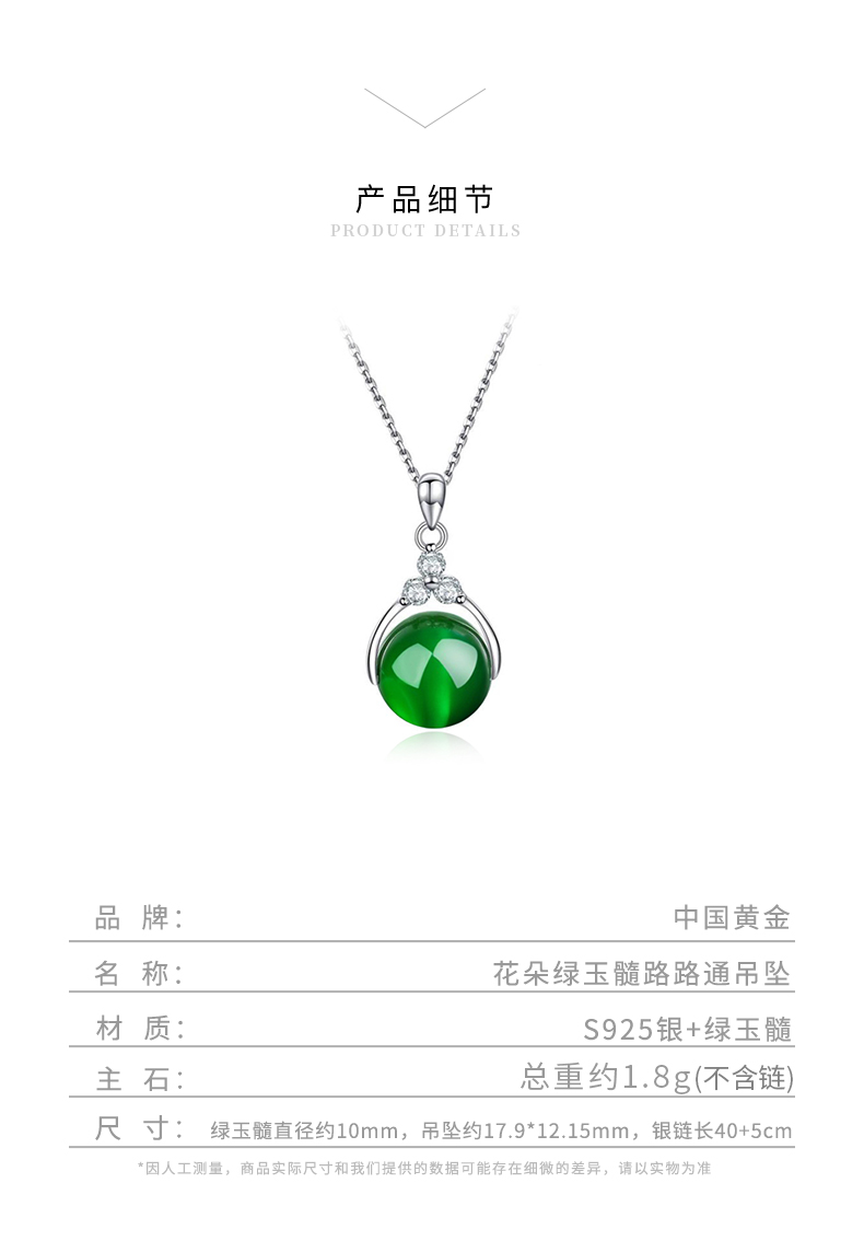 China Gold/中国黄金花朵绿玉髓路路通吊坠+S925银链AX10737