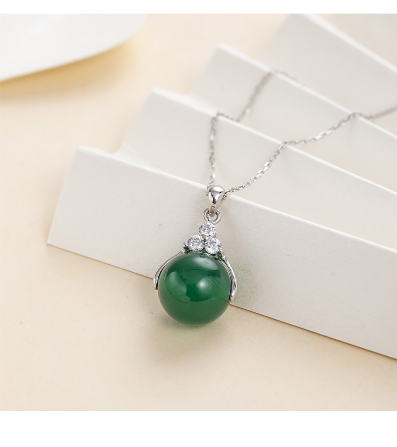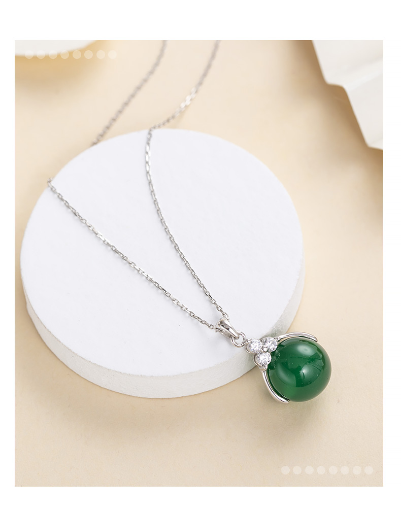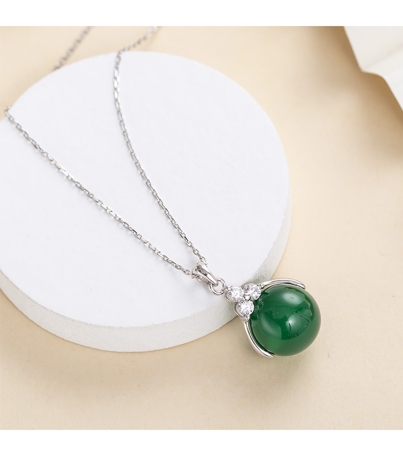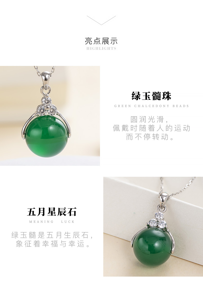 China Gold/中国黄金花朵绿玉髓路路通吊坠+S925银链AX10737