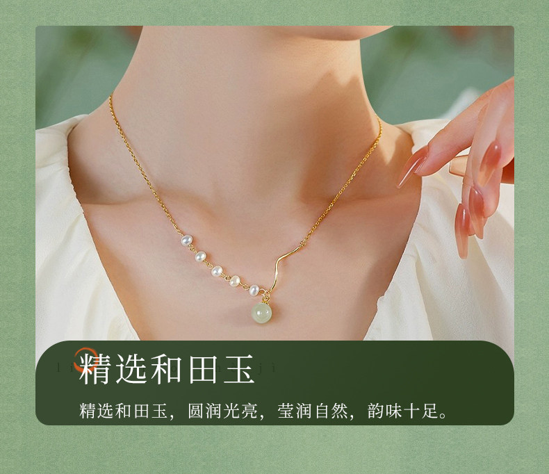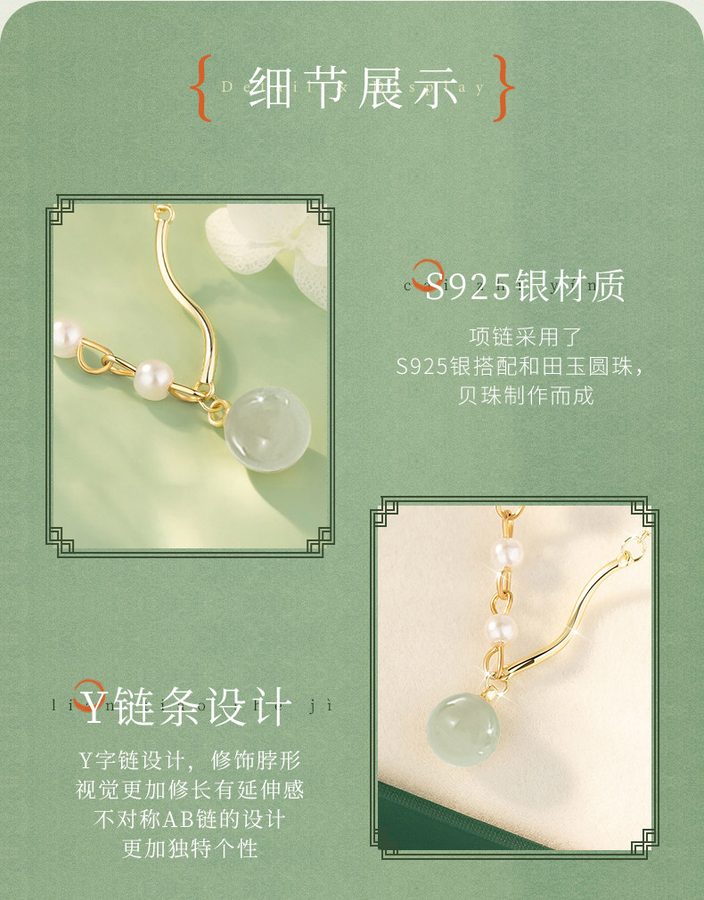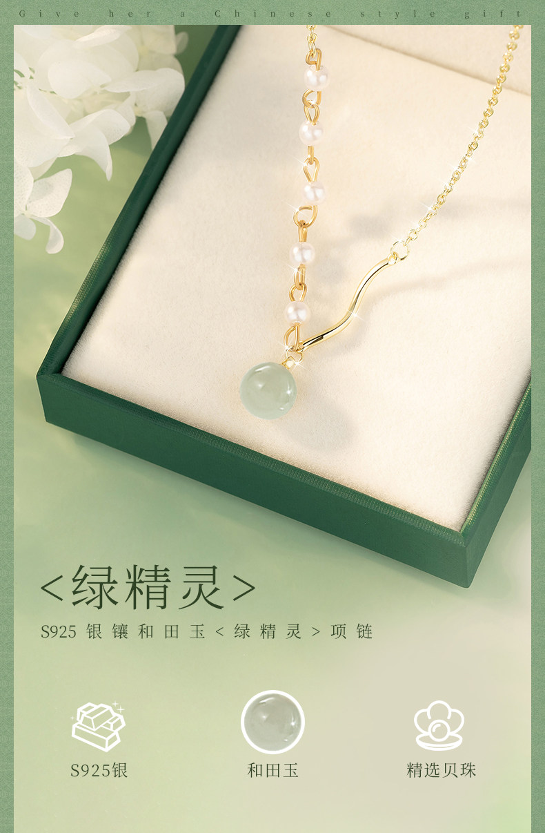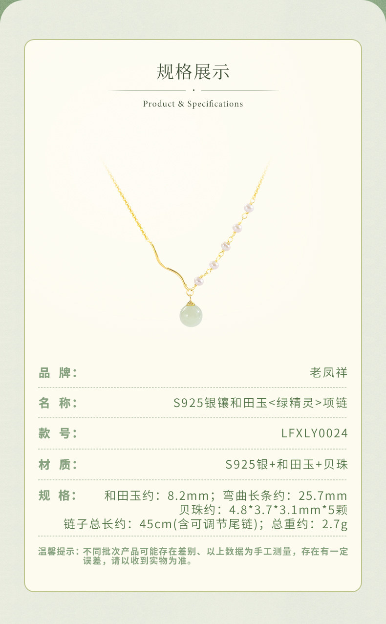 商品名称:老凤祥S925银镶和田玉绿精灵项链LFXLY0024