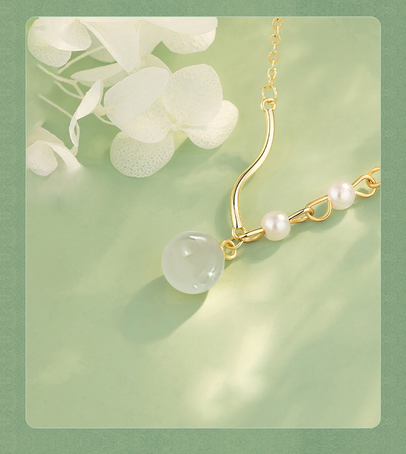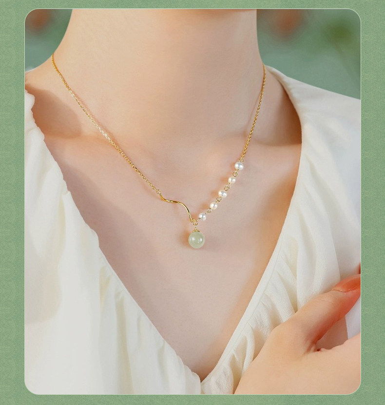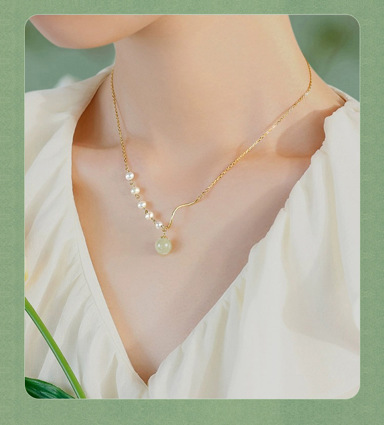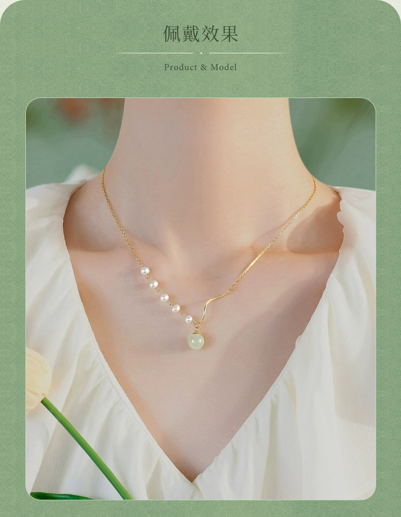 商品名称:老凤祥S925银镶和田玉绿精灵项链LFXLY0024