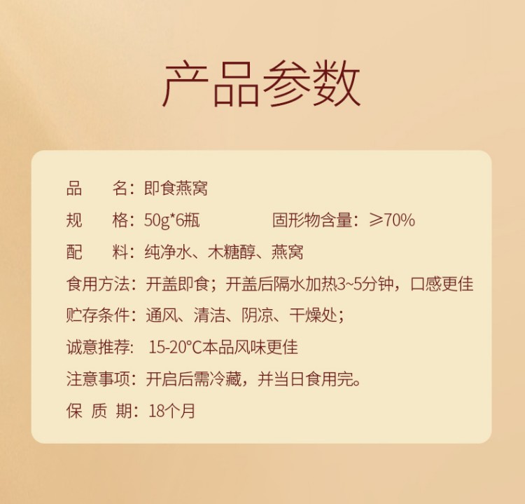 商品名称:官妃燕即食燕窝礼盒50ml*6瓶