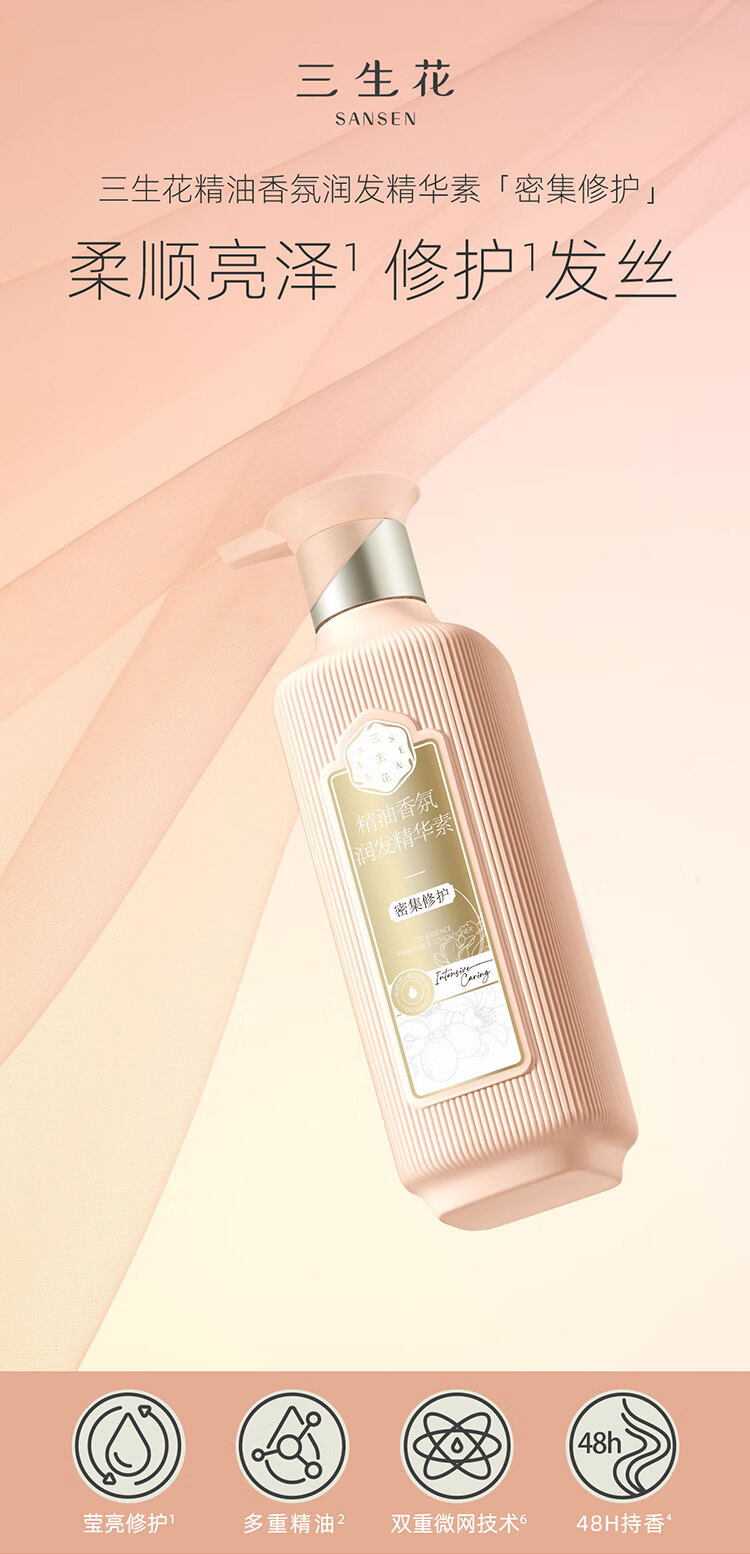 商品名称:PECHOIN/百雀羚三生花精油香氛润发精华素(密集修护)500ml