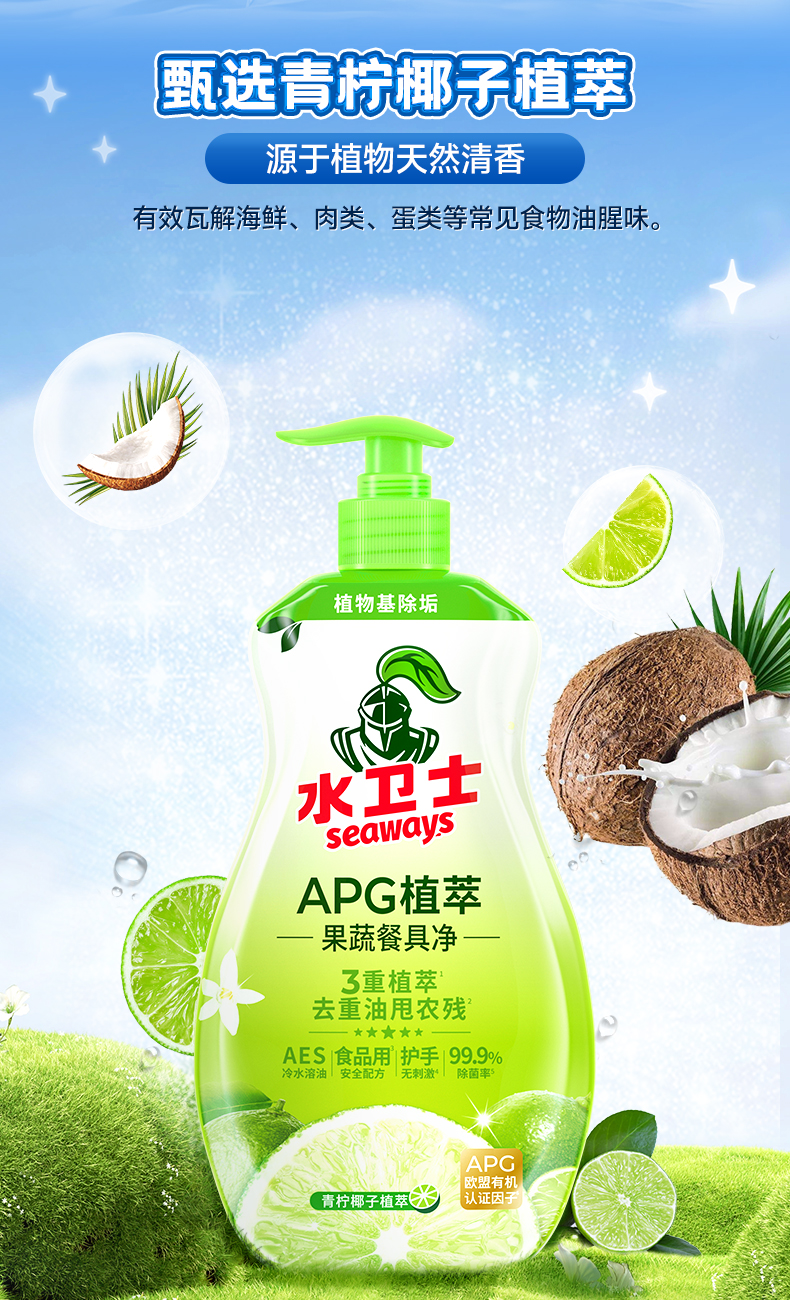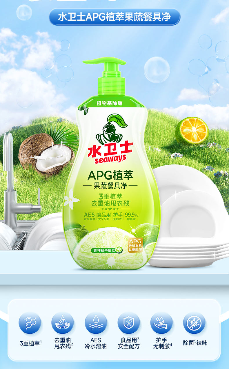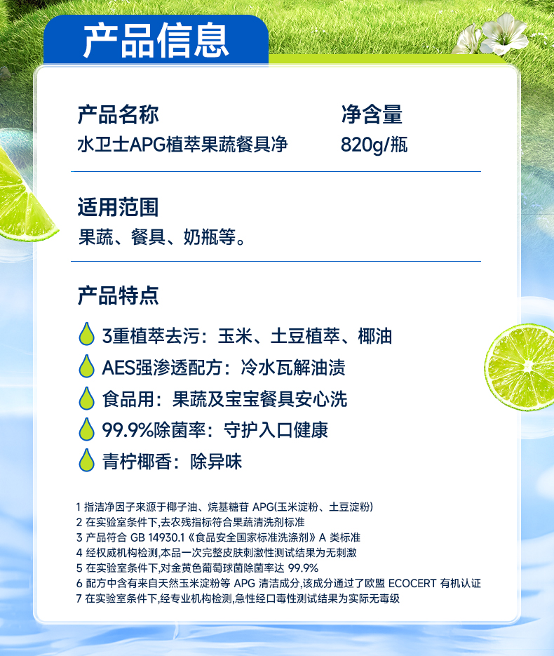商品名称:水卫士APG植萃果蔬餐具净820g*3瓶(喷头*1)