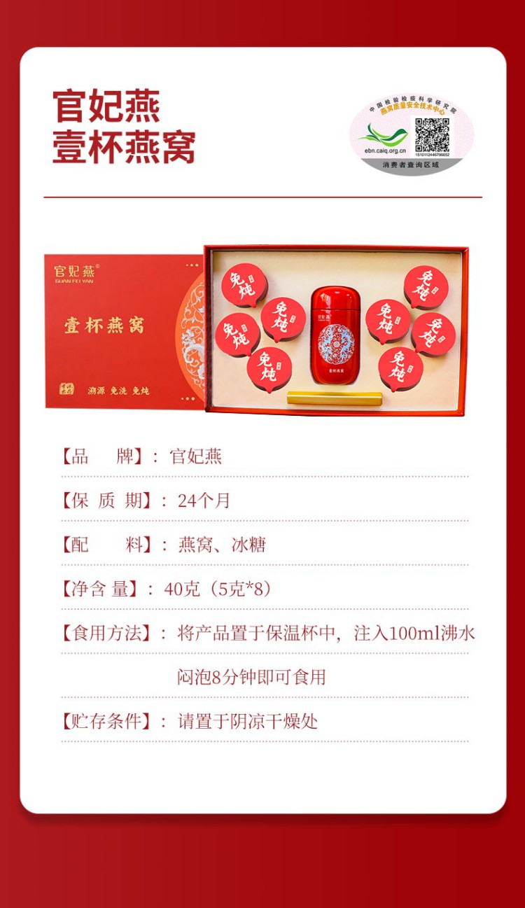 商品名称:官妃燕免炖壹杯燕窝礼盒40g