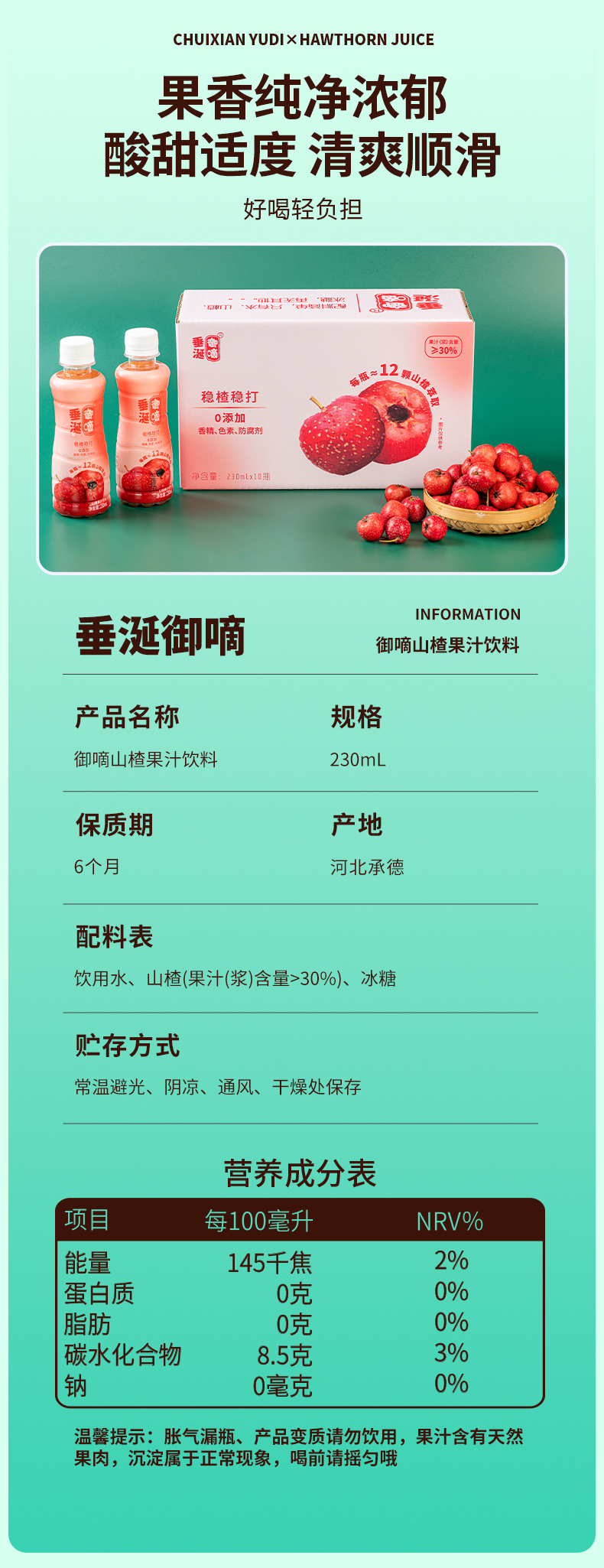 商品名称:御嘀山楂果汁整箱230ml*10瓶