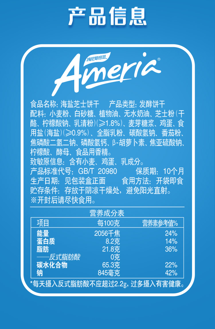 商品名称:盼盼梅尼耶海盐芝士饼干280g*5袋