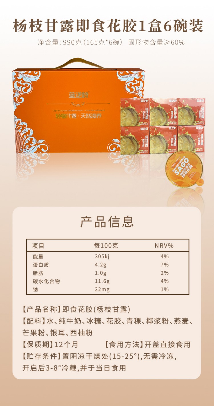 商品名称:官妃燕蓝逆龄杨枝甘露花胶252g*9碗