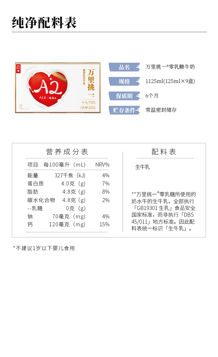 商品名称:LePur'/乐纯万里挑一零乳糖牛奶125ml*9盒*3箱