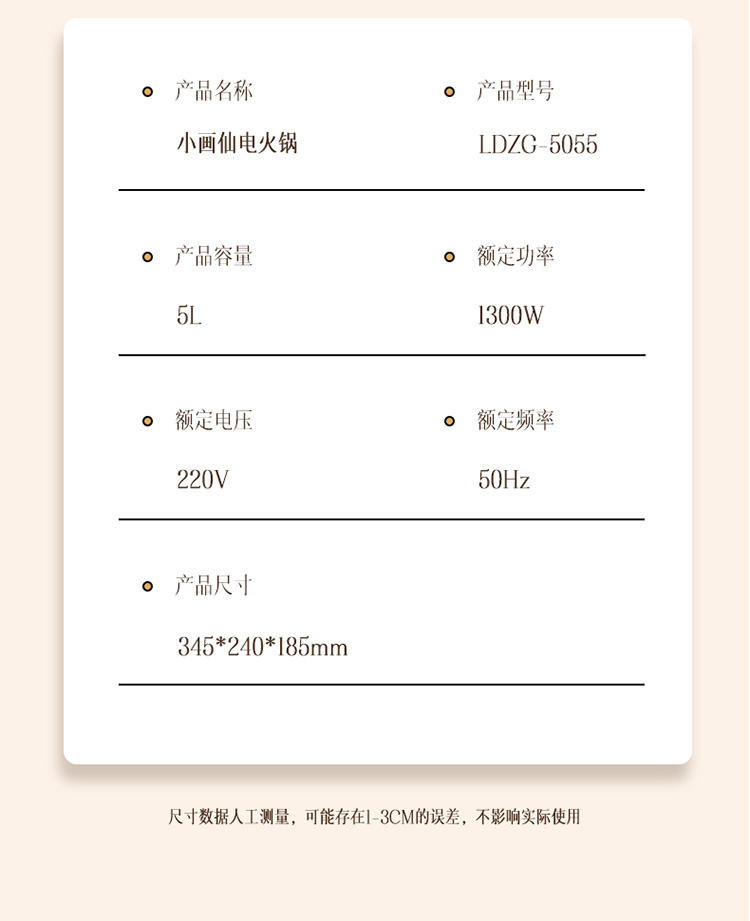 商品名称:小画仙5升多功能电火锅LDZG-5055