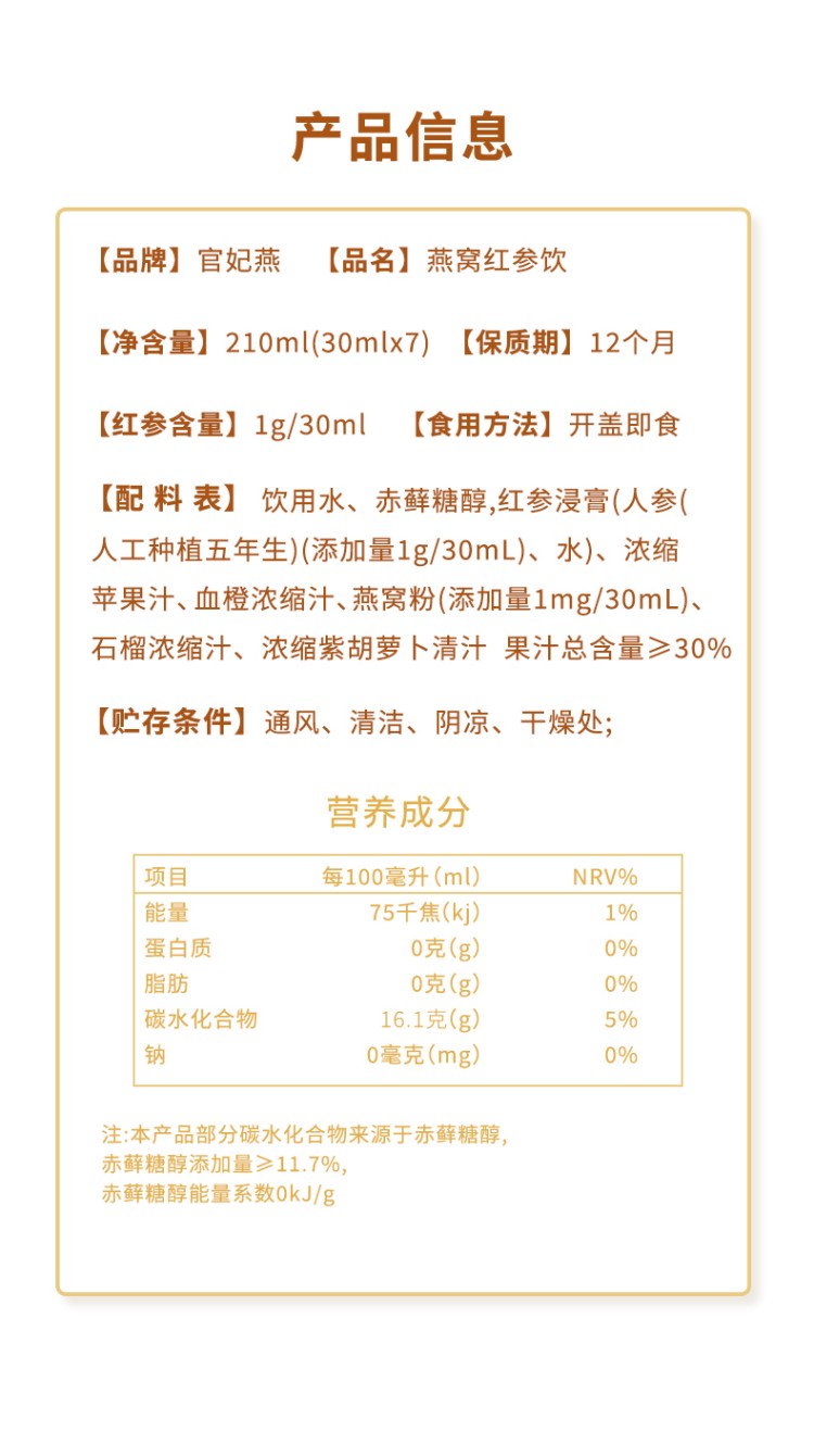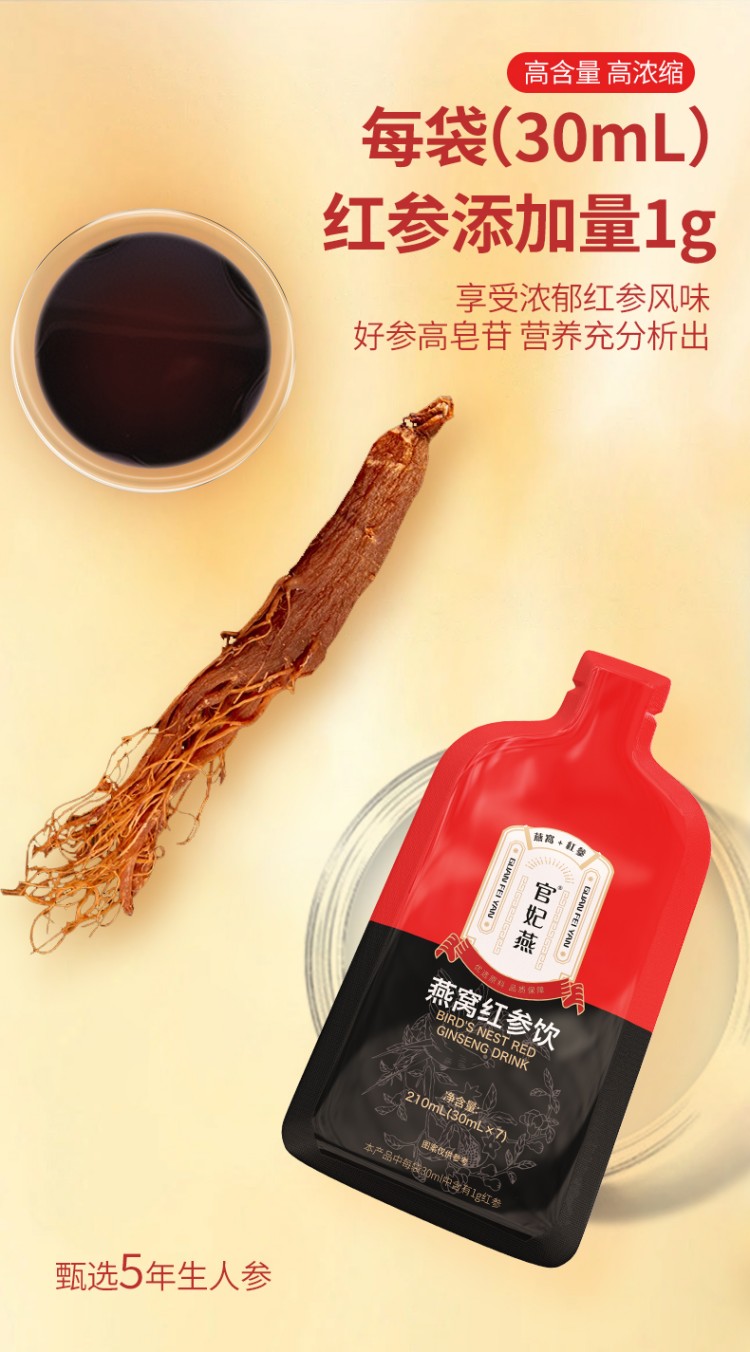 商品名称:官妃燕燕窝红参饮30ml*7袋