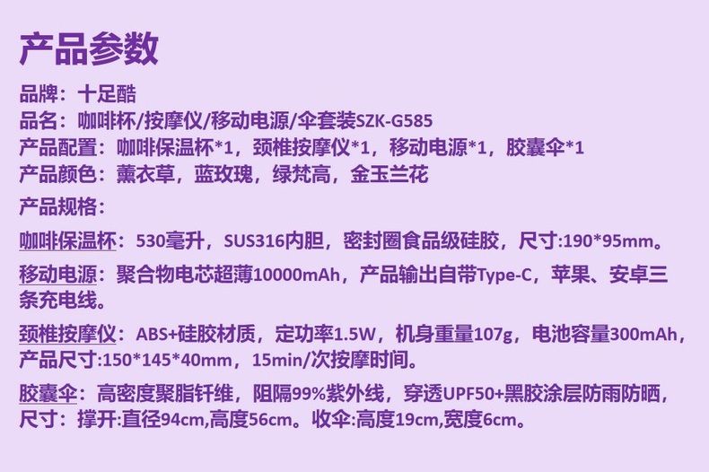 商品名称:十足酷咖啡杯/按摩仪/移动电源/伞套装SZK-G585 礼盒礼包