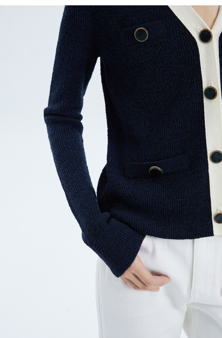 商品名称:春季季时尚拼色气质通勤修身款针织开衫 823771