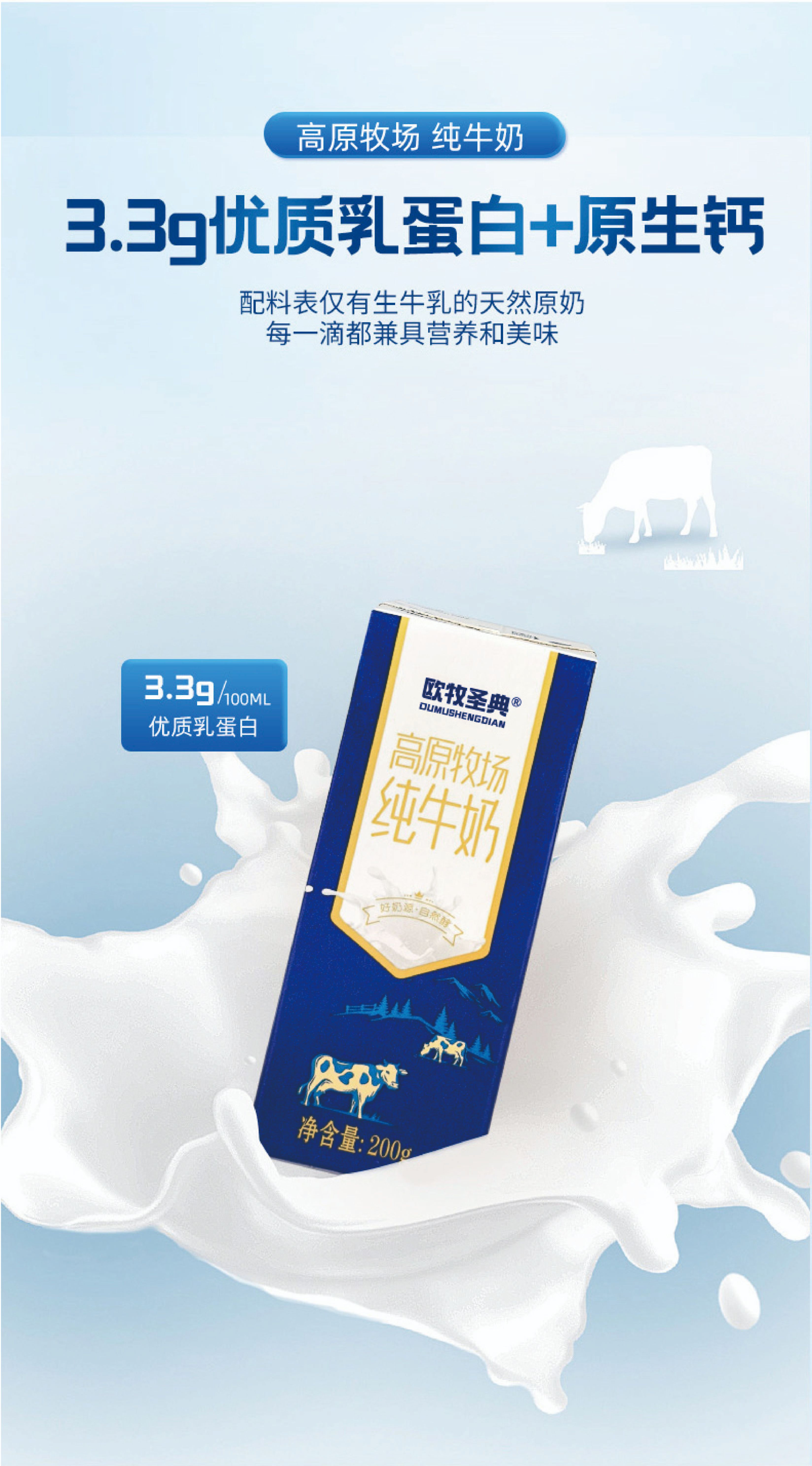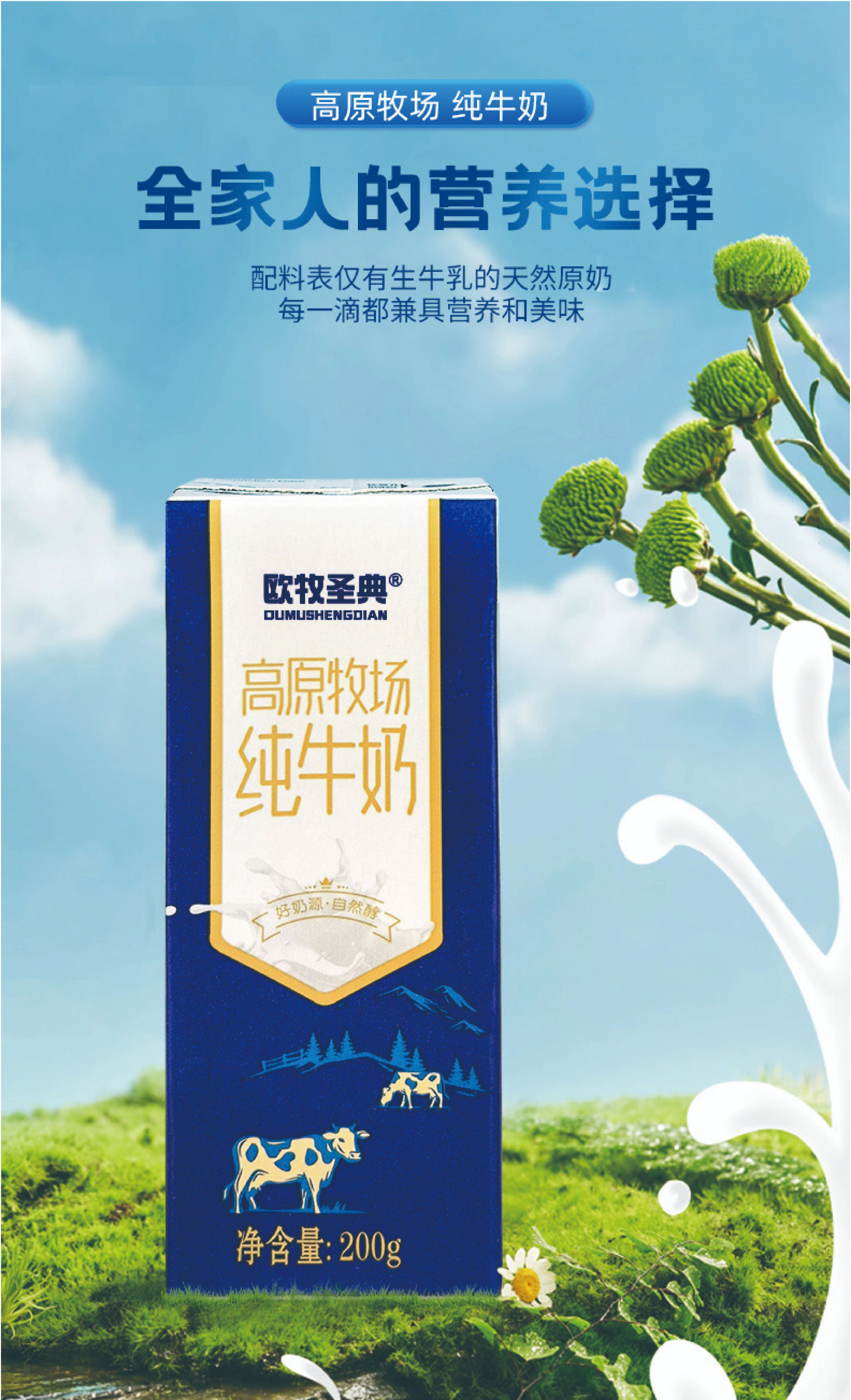 欧牧圣典高原纯牛奶200m1*10盒*6箱