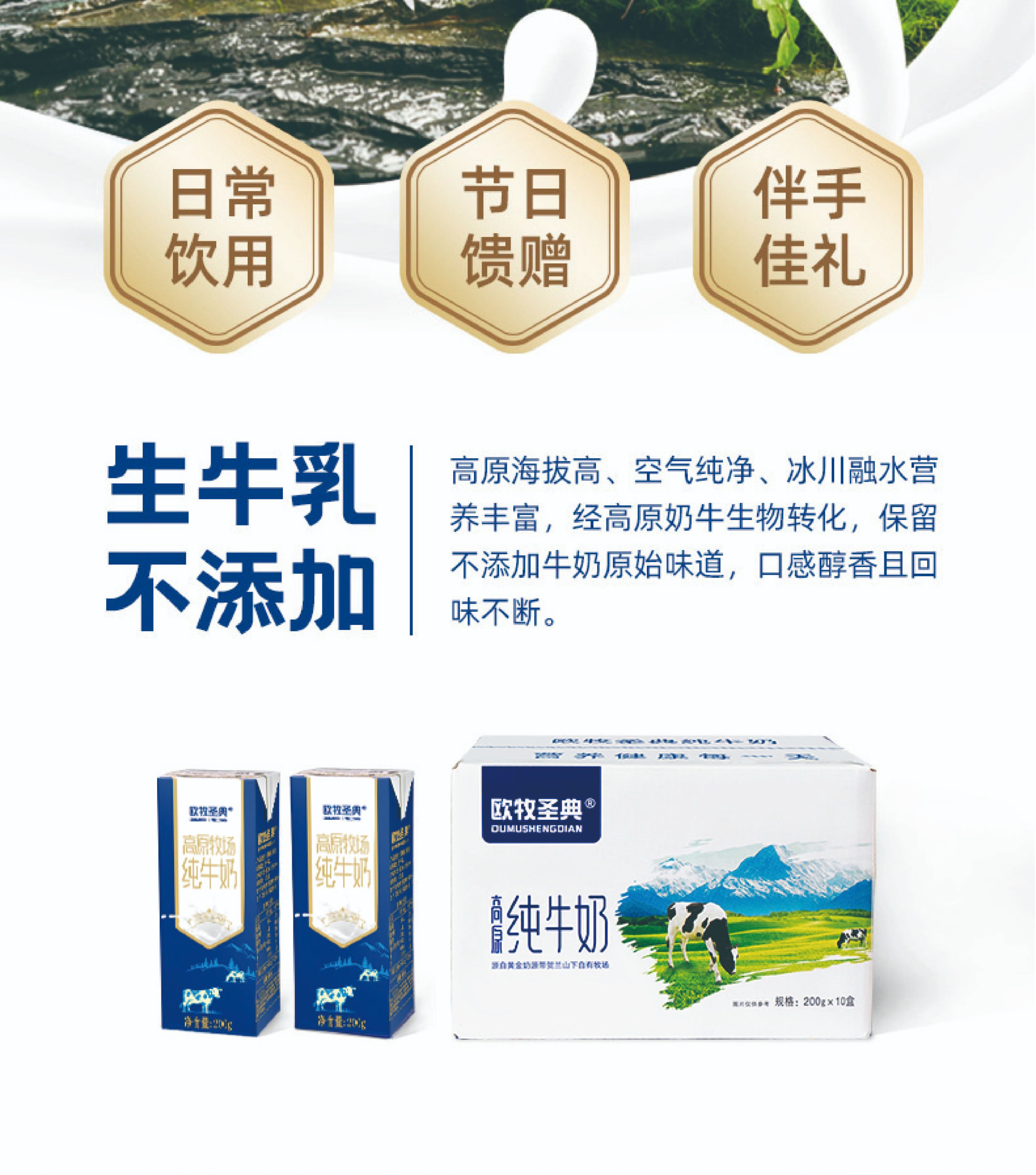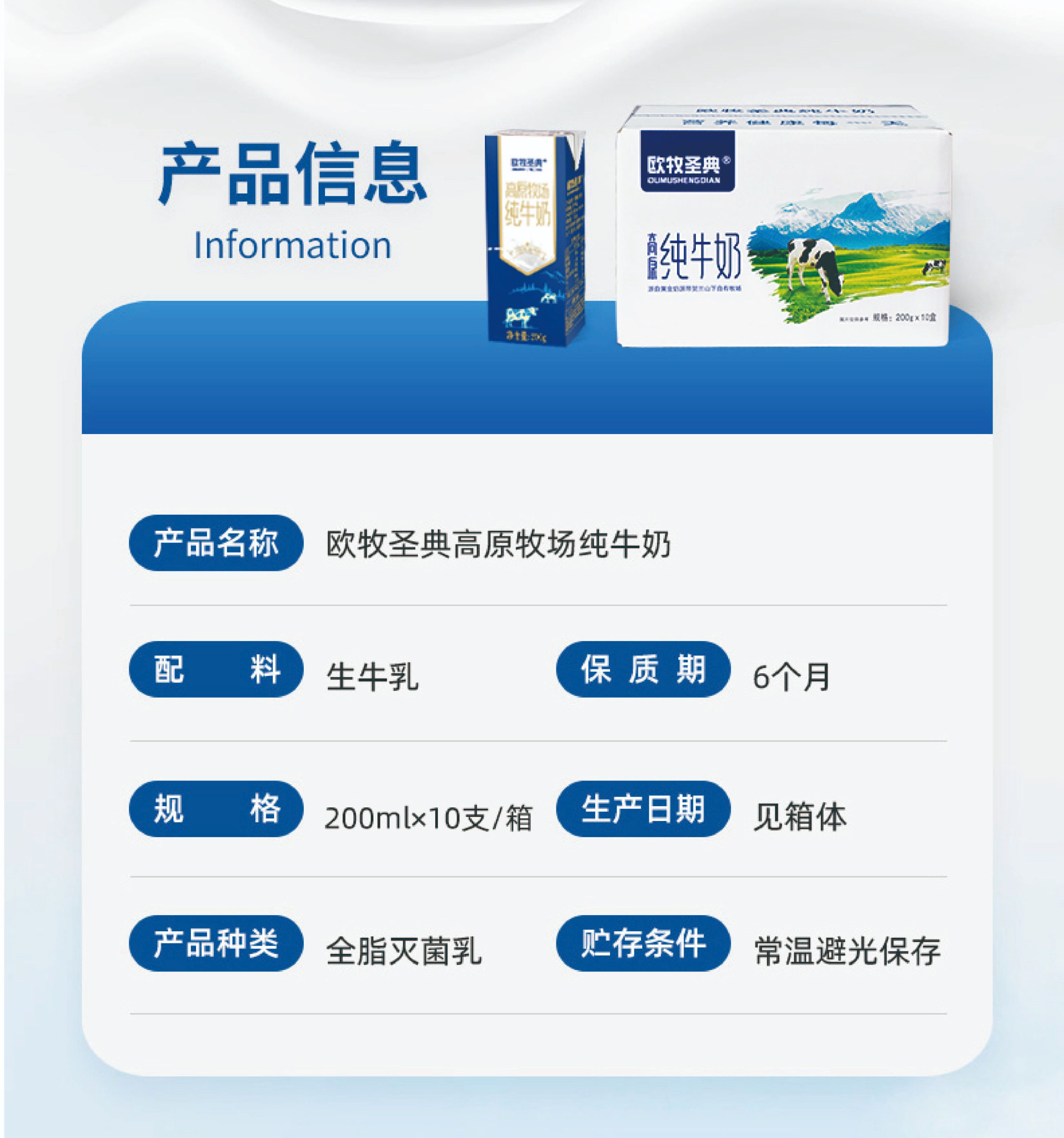 商品名称:欧牧圣典高原纯牛奶200m1*10盒*6箱