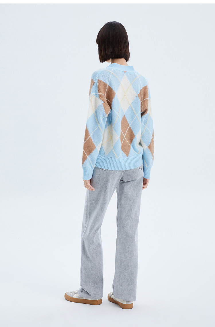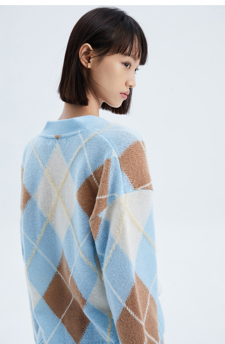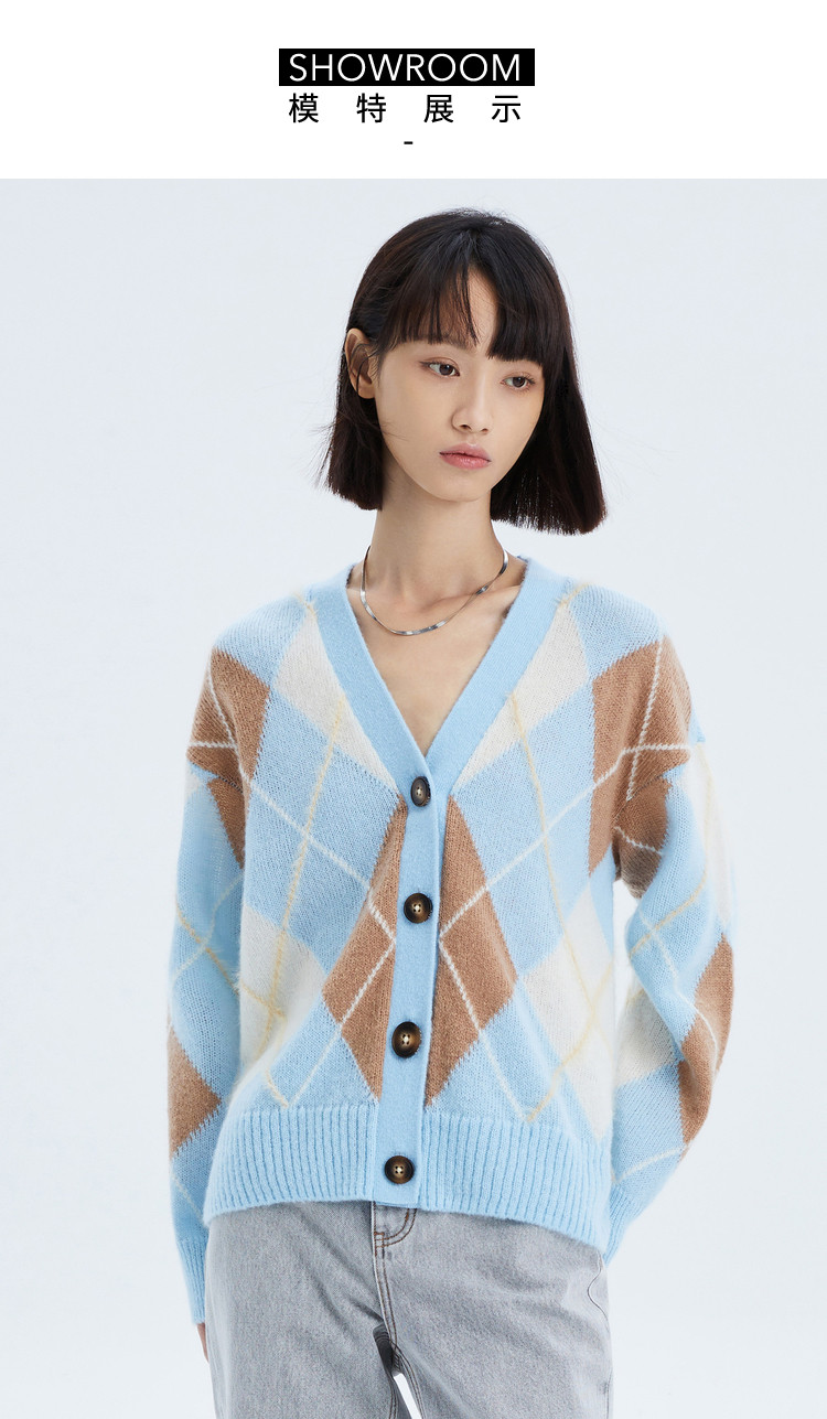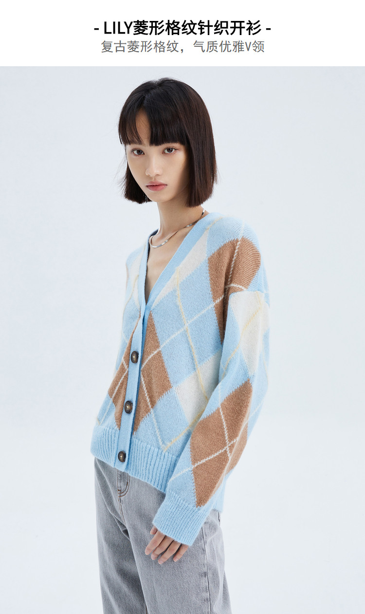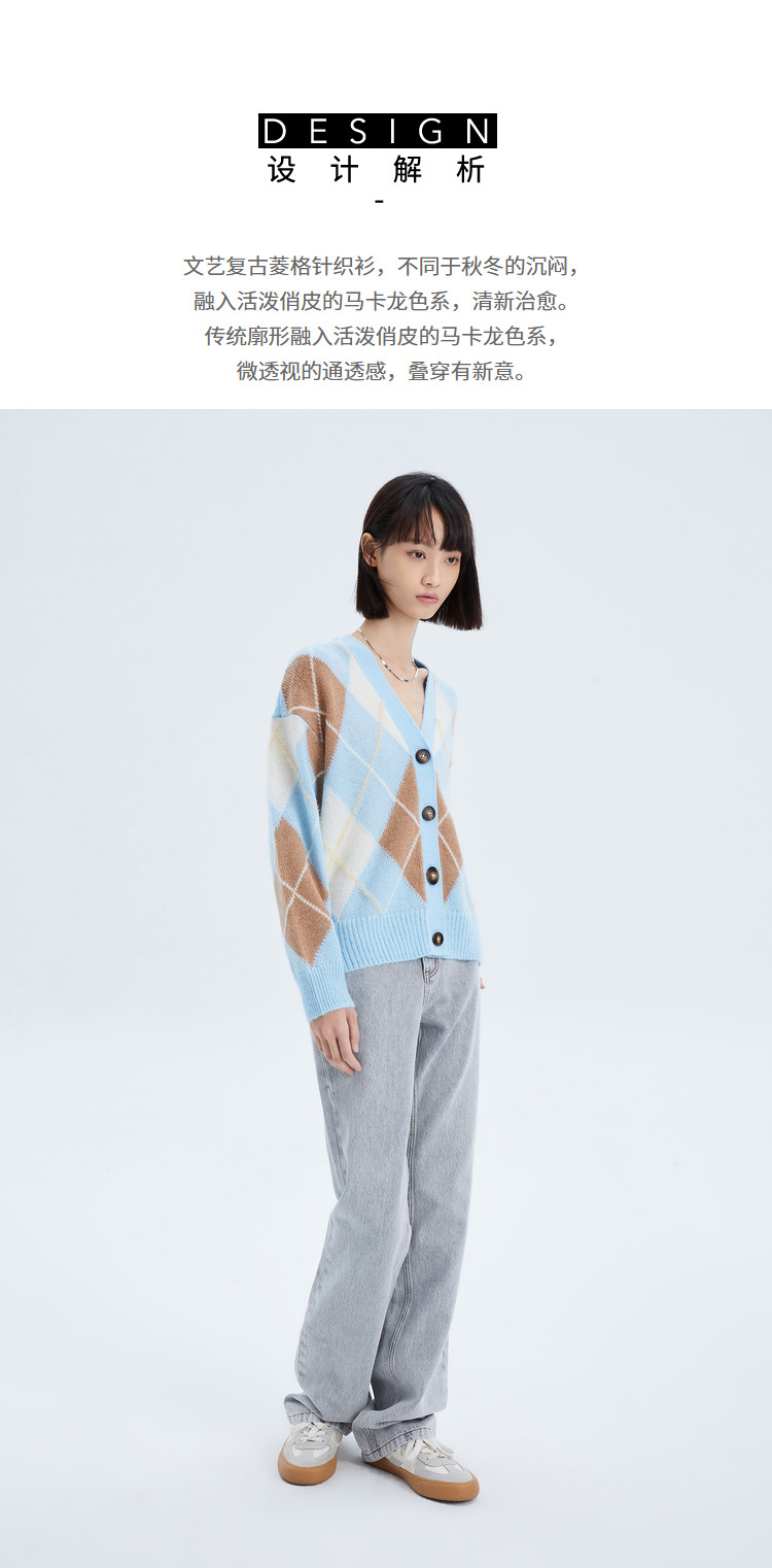 商品名称:【商场同款】春季时尚菱形格复古洋气通勤针织开衫 154459