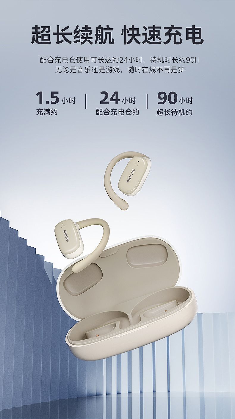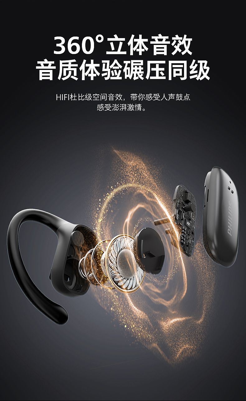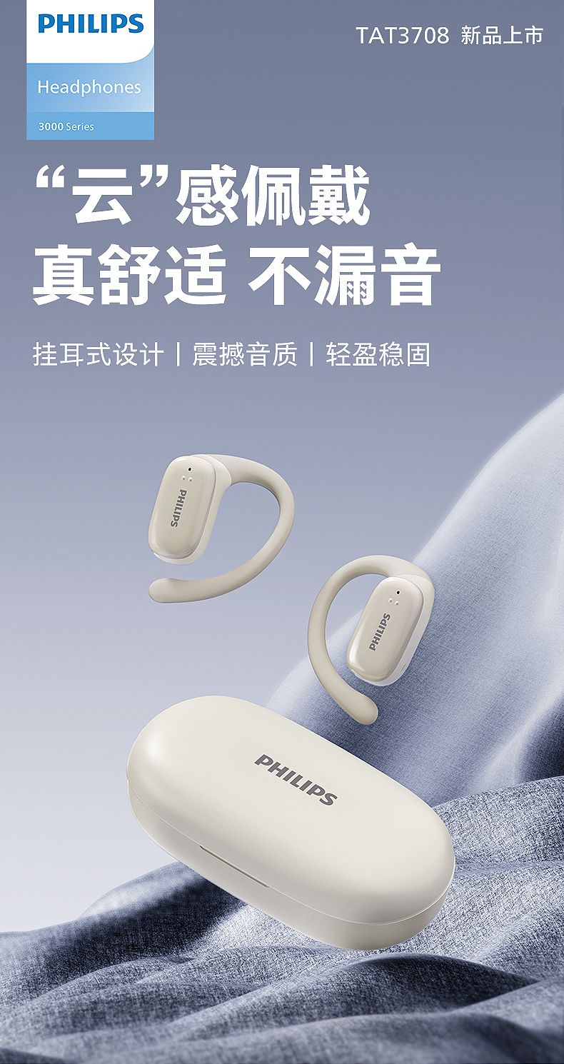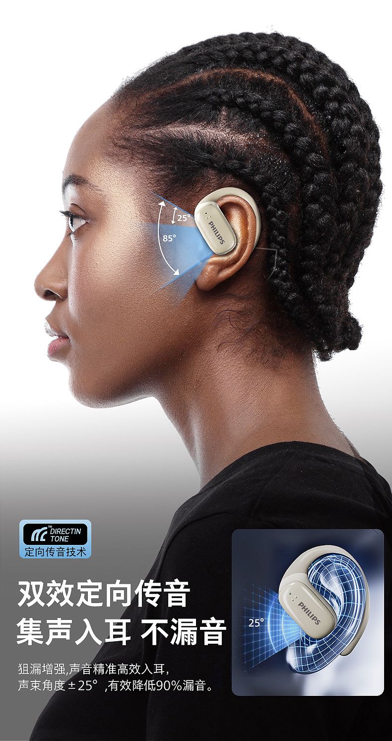 飞利浦(PHILIPS)蓝牙耳机挂耳式骨传导概念真无线开放式不入耳夹式耳机TAT3708