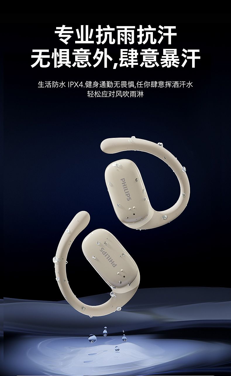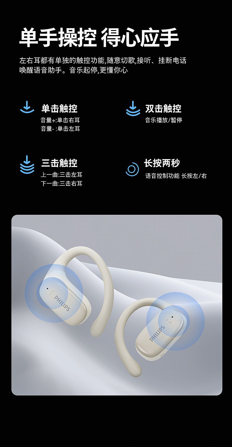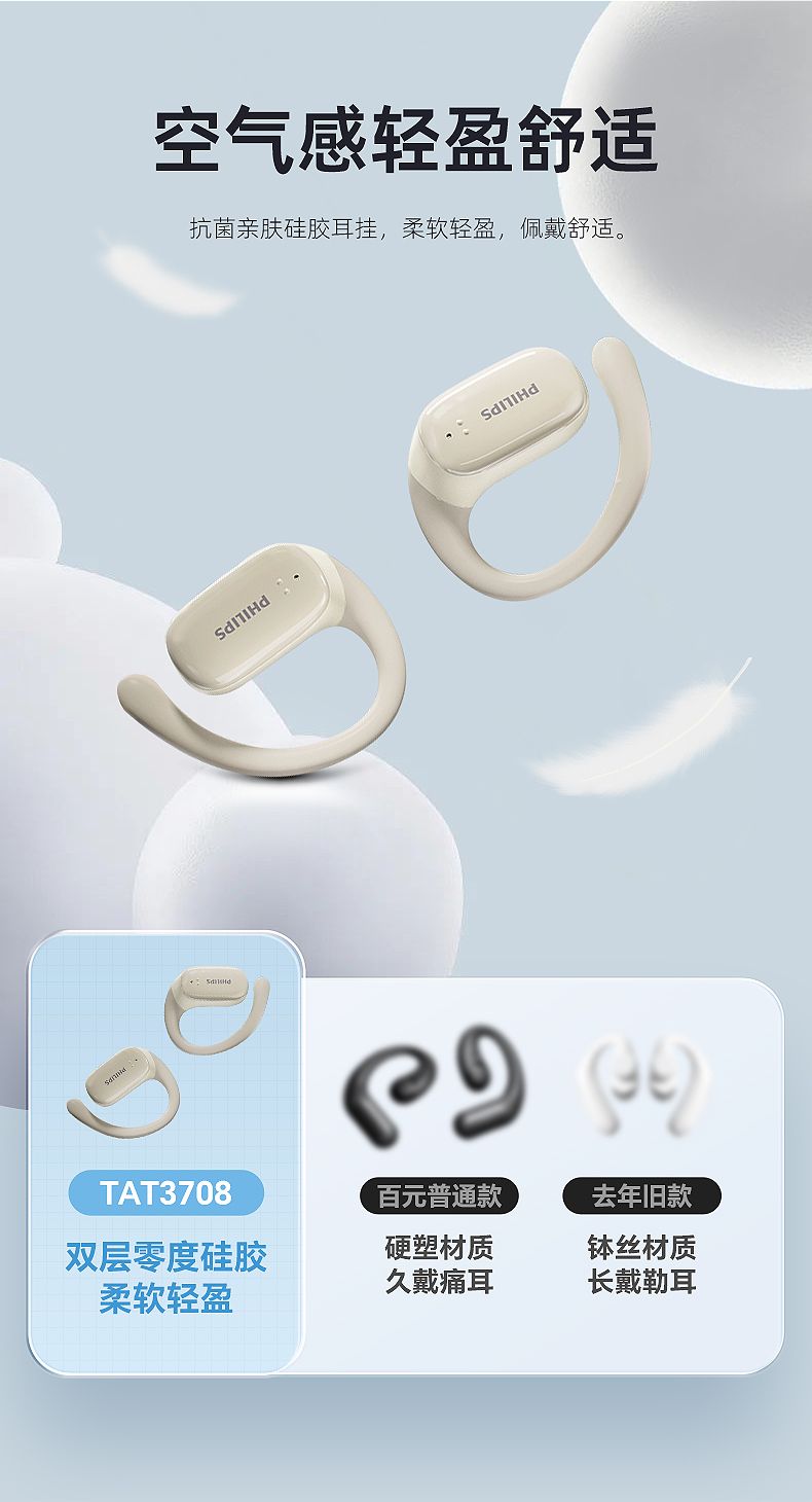 飞利浦(PHILIPS)蓝牙耳机挂耳式骨传导概念真无线开放式不入耳夹式耳机TAT3708