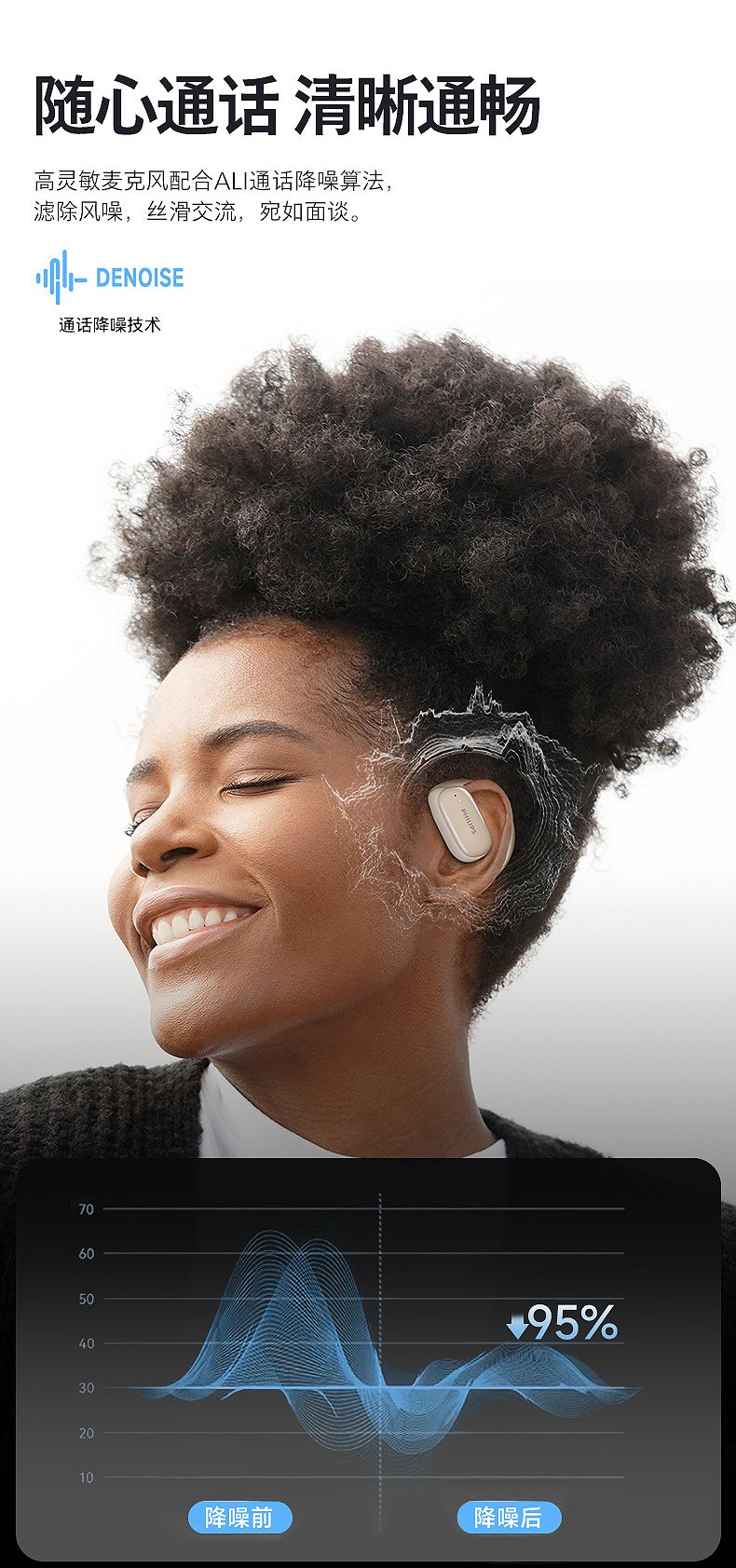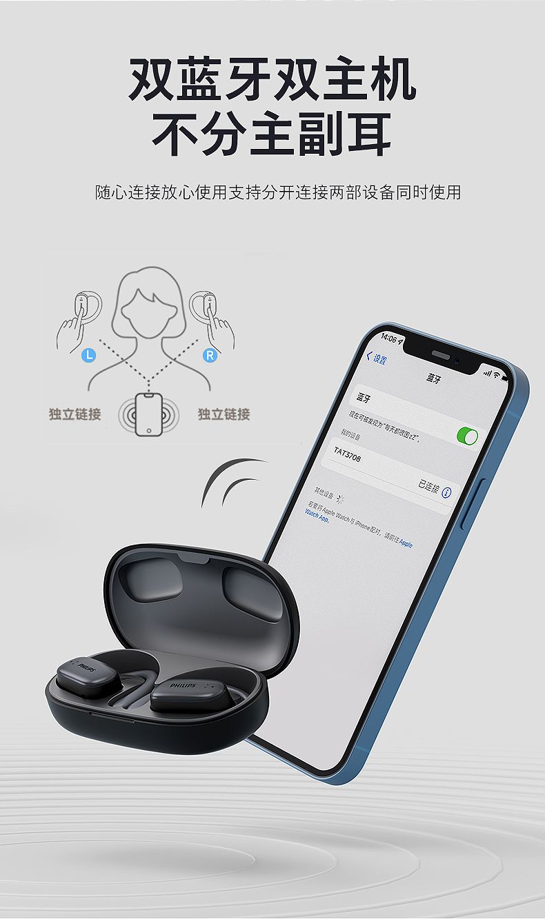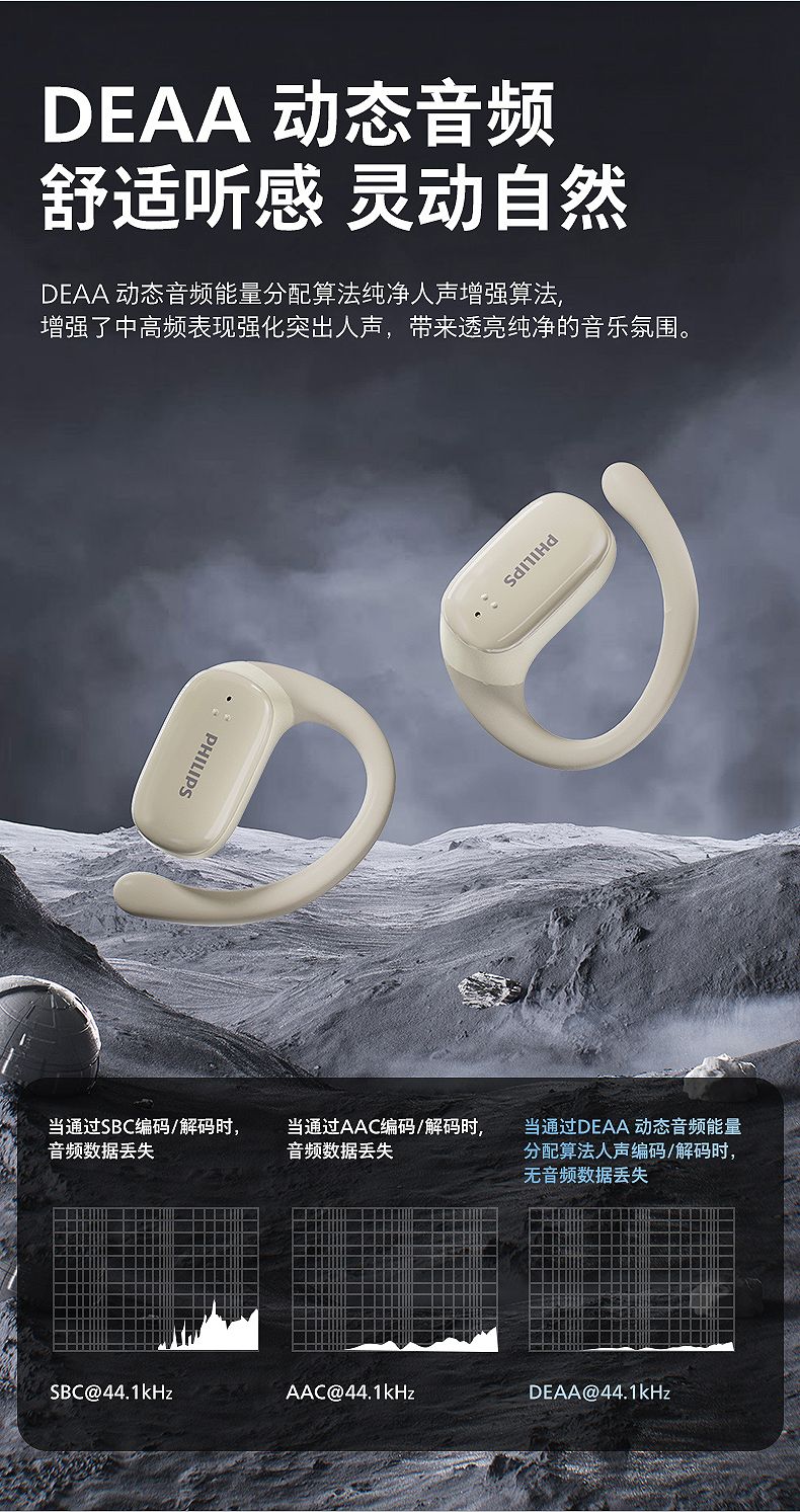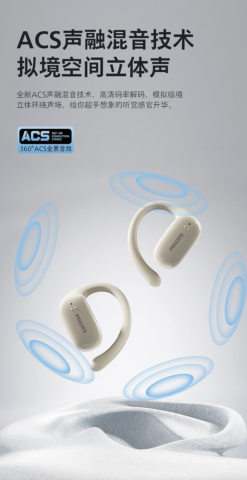 飞利浦(PHILIPS)蓝牙耳机挂耳式骨传导概念真无线开放式不入耳夹式耳机TAT3708