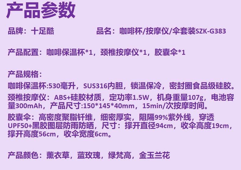 商品名称:十足酷咖啡杯/按摩仪/伞套装SZK-G383 节日生日礼盒礼包
