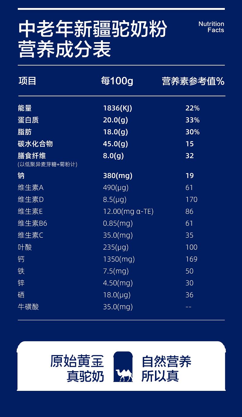 商品名称:原始黄金 调制驼乳粉 (中老年)