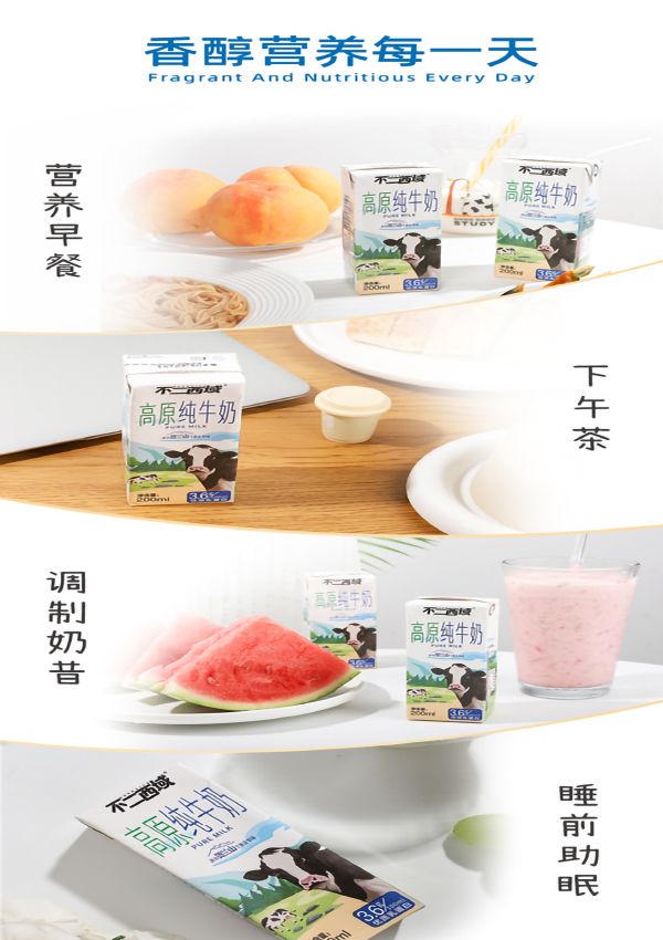 不二西域高原纯牛奶200ml*12盒*3箱
